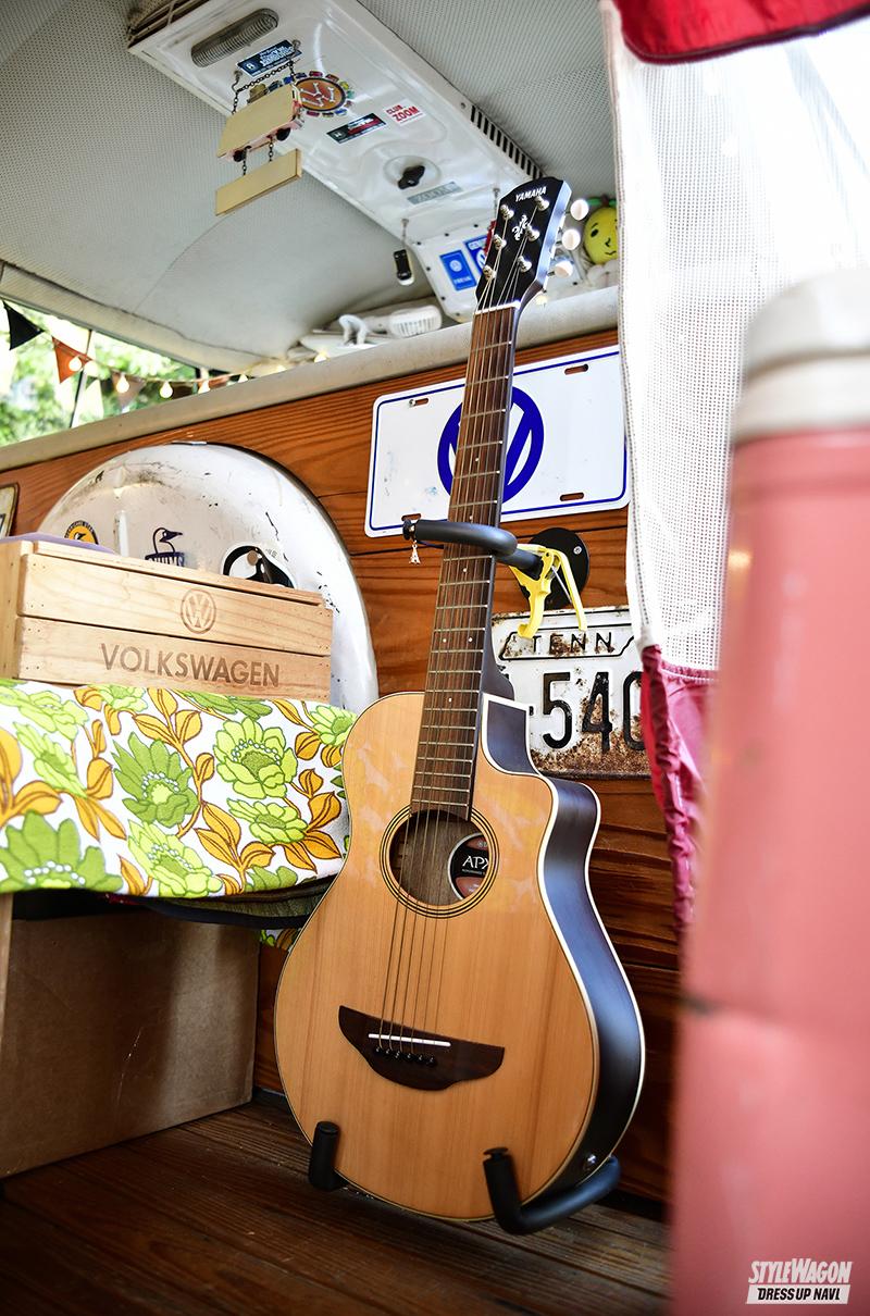 そうしたアイテムを積み込むワーゲンバスの方も、相応しいようカスタマイズを実施。外装はルーフラックキャリア&ラダーを追加し、室内はフロアや側面を板張り仕様にしてアウトドア感を演出している。今後はホワイトリボンタイヤ導入も検討中とか。