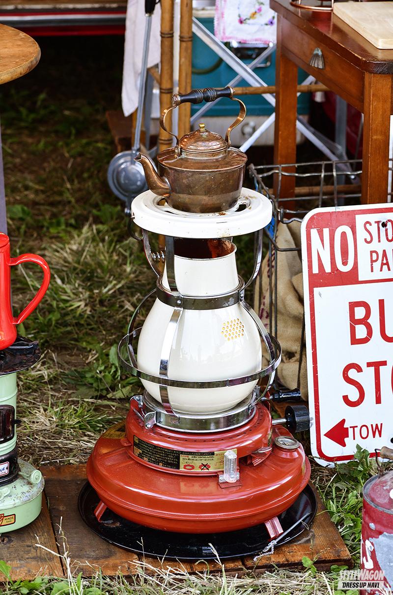 「古い物が大好きで、自宅でもヴィンテージ家具や雑貨を愛用しているんです。キャンプを始めた頃は今どきの普通のギアを使っていたんですが、やっぱりアウトドアでも古い方がカワイイよねってことで、現在のスタイルに落ち着いていきました」と奥様の恵さん。