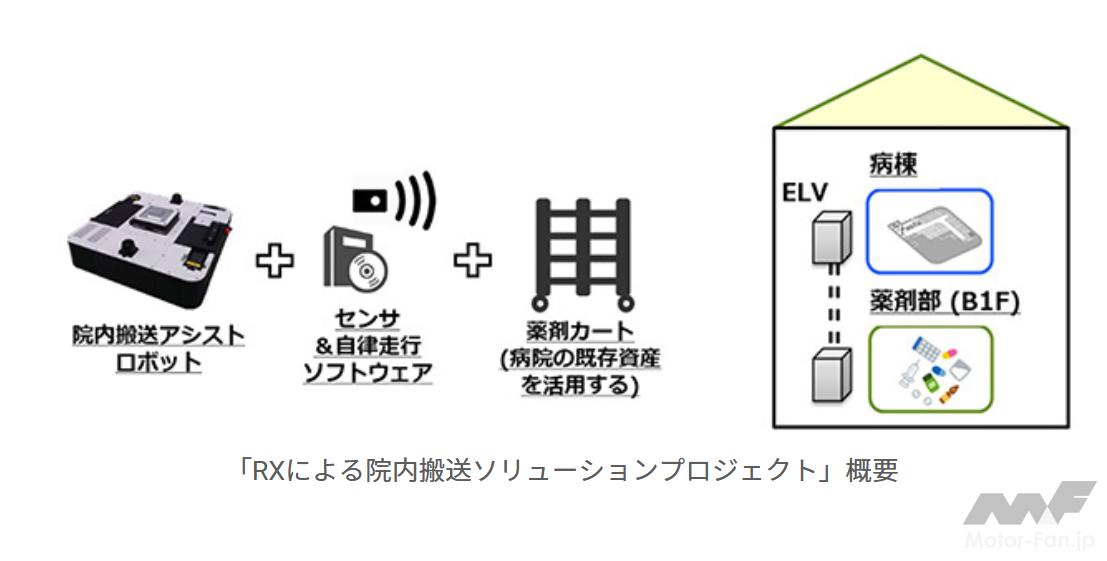 | プロジェクト概要 | 薬剤カートの自律走行搬送の成立性検証、医療現場での実証事業 |