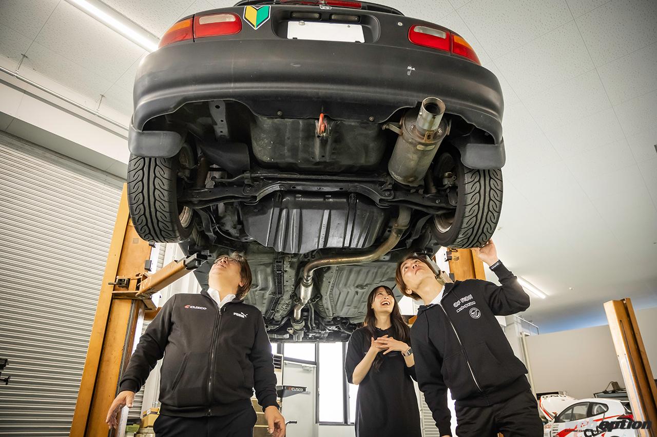 沢さんが続ける。「私はメカに詳しくないので、このままの状態で乗っていて平気なのか不安で…。そこで普段からお世話になっているヨコハマタイヤさんに相談したんです。そしたら、担当の方から『面白そうだから、チューニングに特化したウェブメディアのWEB OPTIONを巻き込んで企画にしちゃおう!』という話になって(笑)」。