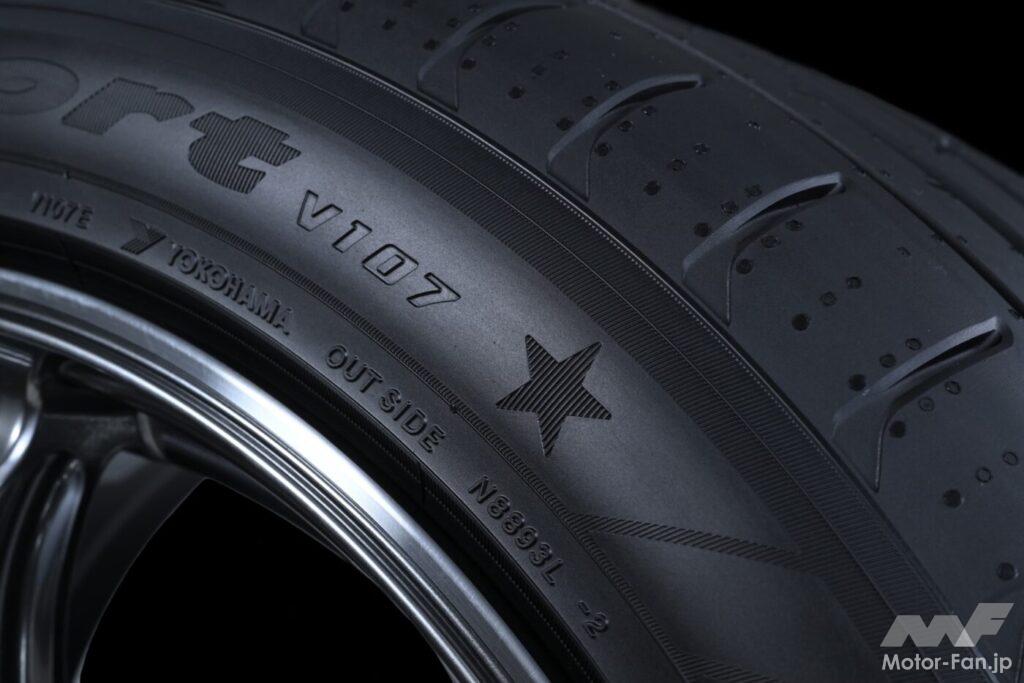 横浜ゴムでは数多くの欧州のプレミアムカーメーカーらと共同でタイヤ開発を行なっており、新車装着されるOE用タイヤや、技術認証を受けたタイヤには、それぞれのメーカー向けを示す証、例えばメルセデスAMG用には「MO1」などのマークが刻まれる。また2022年にデビューした日産フェアレディZの新車装着用タイヤにも、V107は選ばれた。