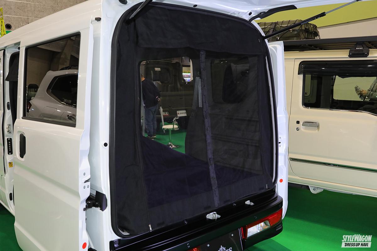車中泊や外遊びでの拠点になる室内空間を通気性に優れたメッシュネットで虫の侵入から守りつつ、センター部のマグネット開閉でスムーズにアクセス可能とするハーツの防虫ネット。外遊びで人気のハイエースやエブリイを中心に、車種専用設計でラインアップを展開している。