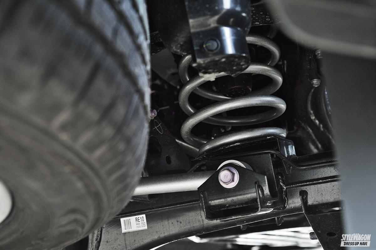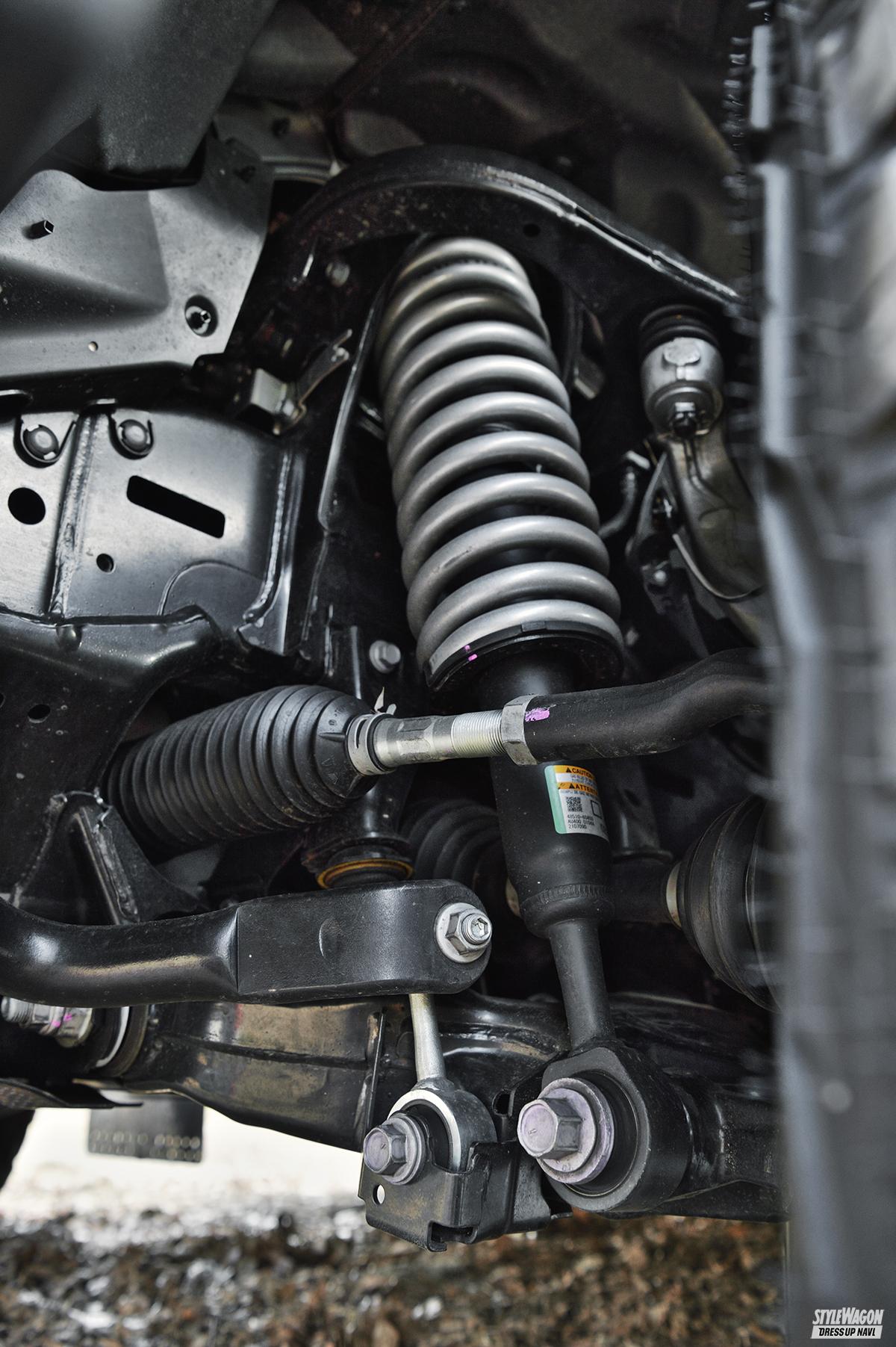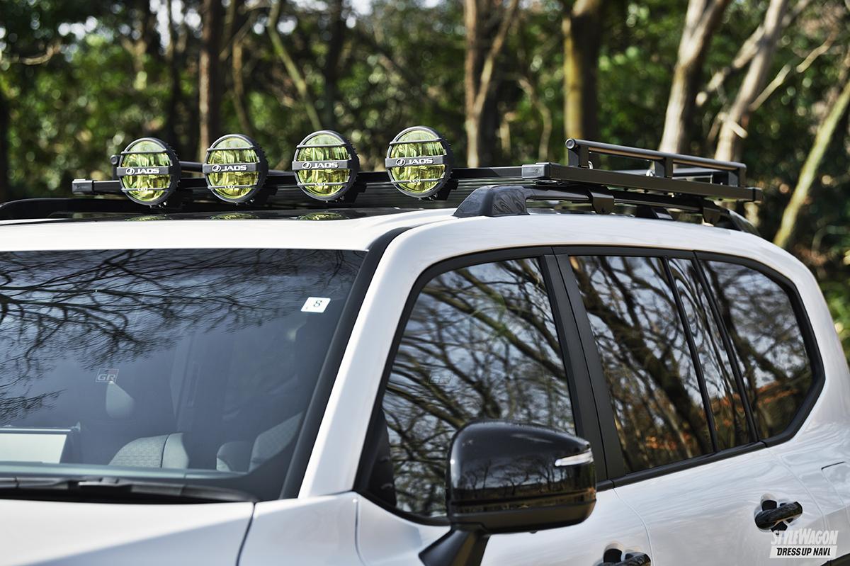 新たにジャオスのデモカーに追加となったGRスポーツのジャオススタイルは、同車が本来持つ本格的なオフローダーとしての特徴をより強調するもの。過酷な路面も想定した18インチの足元には、流行に左右されないシンプルかつ硬派なデザインと高強度かつ軽量という特徴を併せ持つトライブをチョイス。エクステリアにはスキッドバーやプレート(開発中)を装着して本格的な悪路走行も視野に入れている。リフトアップスプリングもGRスポーツ専用セッティングのものを開発中とのことなので、期待して待ちたい。