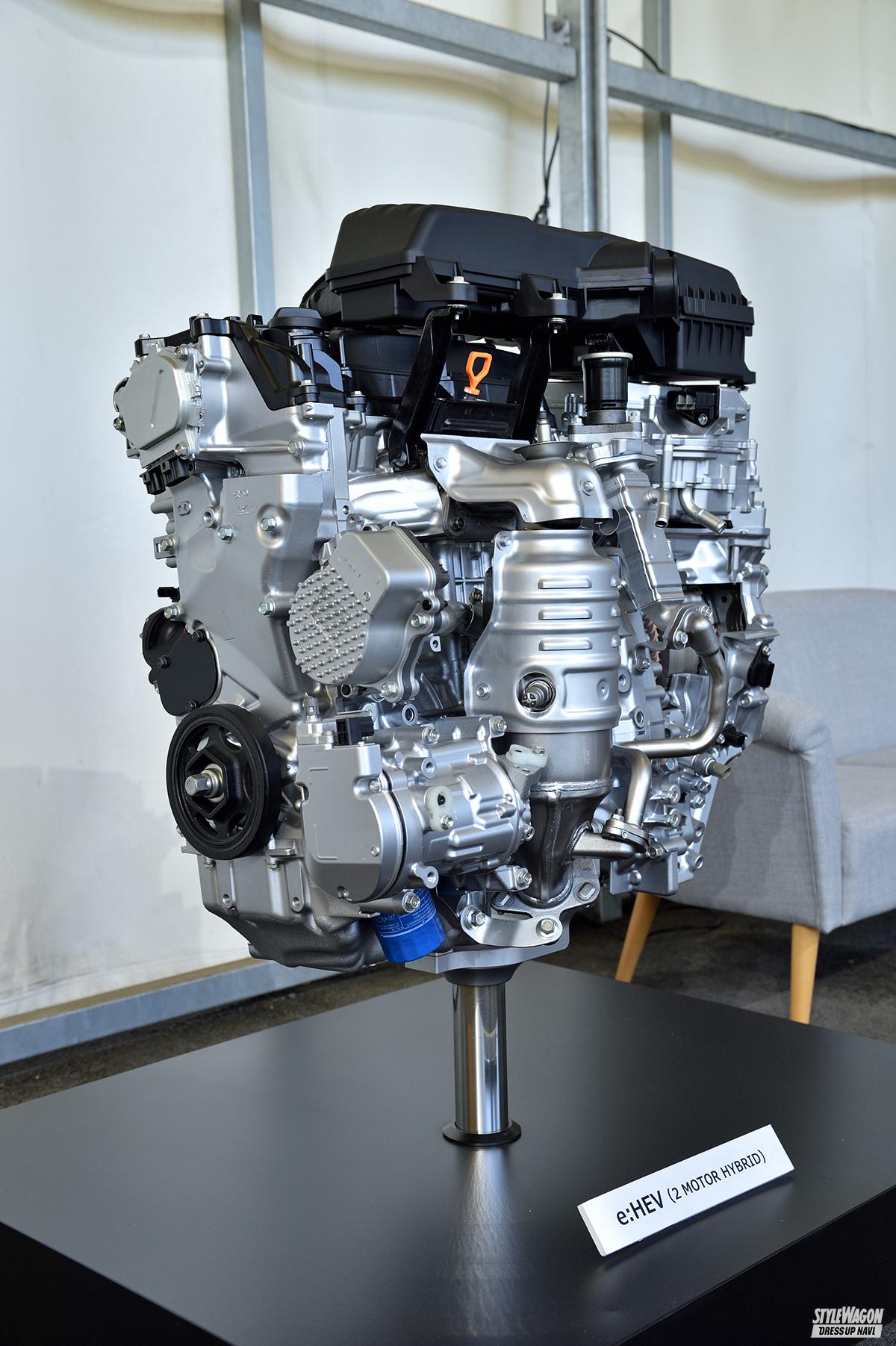 2.0Lエンジンと2モーター内蔵式電気CVTを組み合わせるハイブリッドの「e:HEV」は、スムーズな加速フィールが得られる。街中であればモーター走行が中心で、加速時にエンジンも始動、効率のいい高速域ではエンジンが主役だ。メーター表示でエンジンが頻繁に掛かっているのが分かるが、音や振動は比較的抑えられていて、耳障りではない。ただし、急加速時や登り坂などではそれなりに音は侵入してくる。