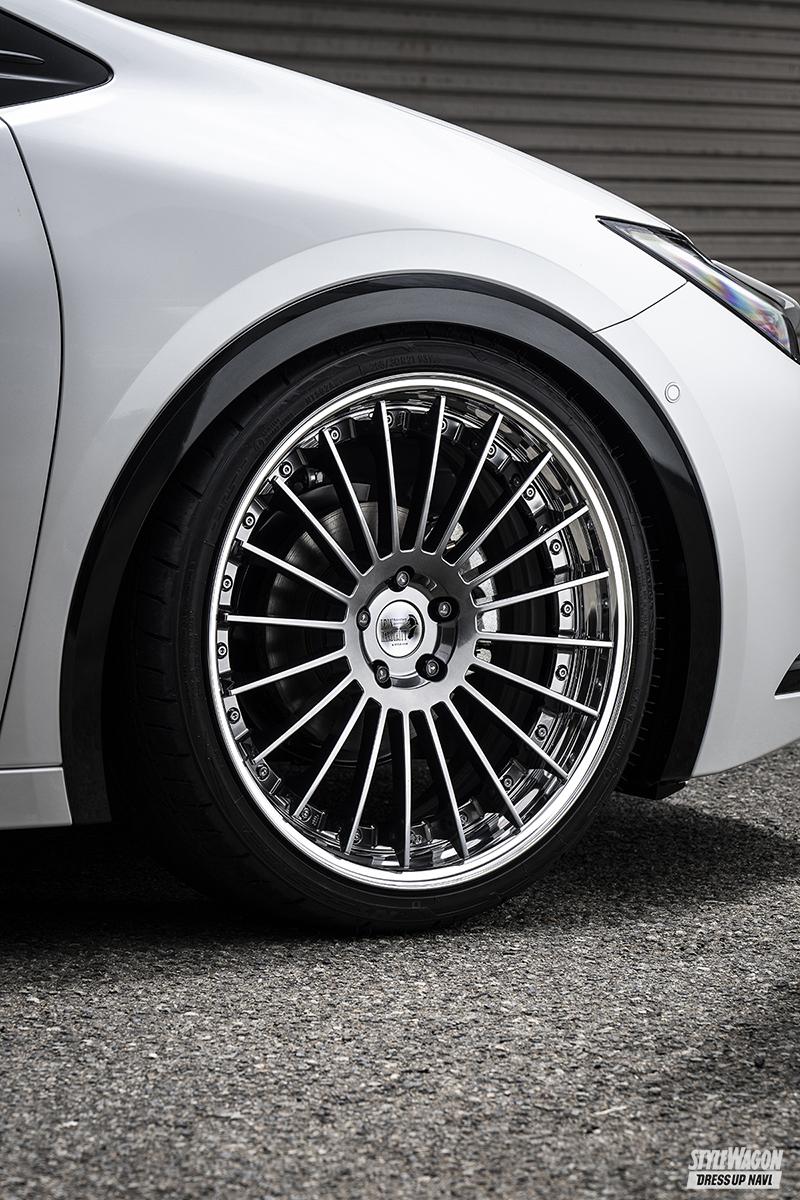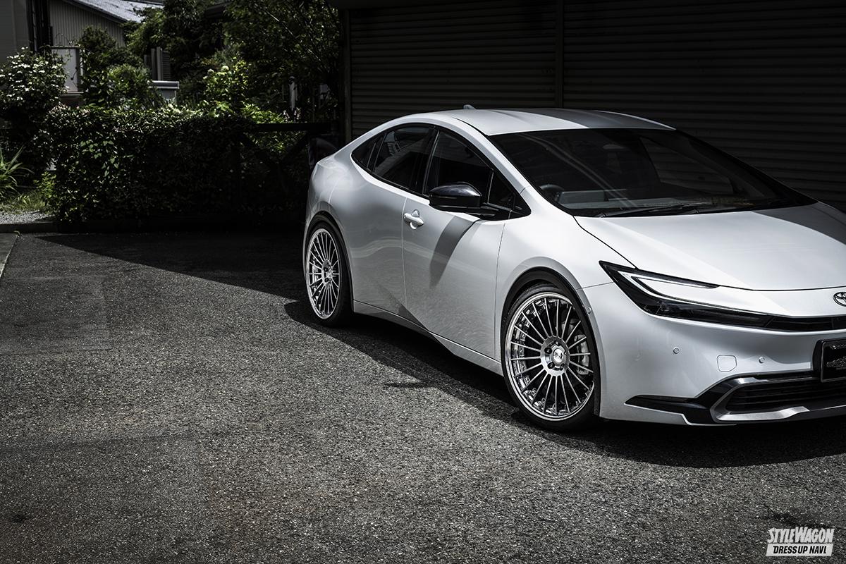 洗練度の増したプリウスとの相性も極上で、そのマッチング姿は実にクリーン。21インチでも車高を落とせばツラツラだ。