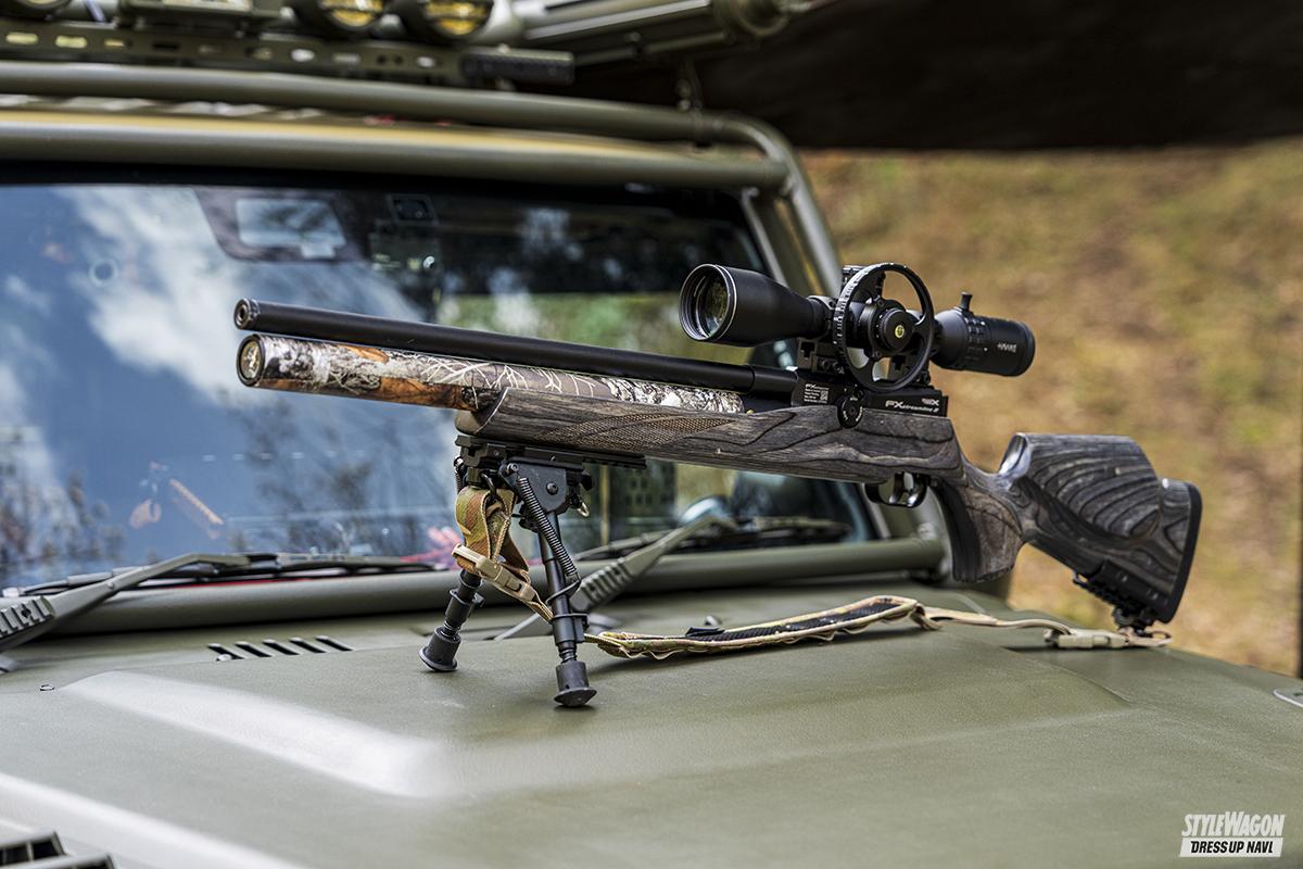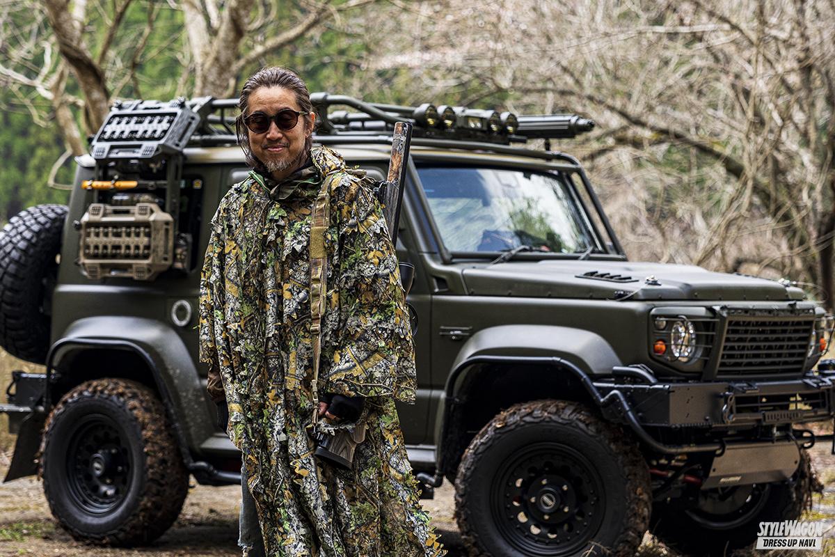 自衛隊のオリーブドラブカラーで全塗され、ゴツいバンパーやロールバーなどでワイルド&ヘビーデューティに仕上がったシエラ。オーナーのKoinさんはフランス料理店を経営するオーナーシェフ。ジムニーは約4年前に購入。お店で使う野菜などを育てるため、自分で畑もやっているのだが、以前乗っていたエブリイでは畑まで入っていくことができなかったのでジムニーに乗り換えた。狩猟は約3年前から。「コロナの影響で店がダメな時期に、趣味と実益を兼ねて猟を始めました。獲物はマガモなどの鳥がメインです」とKoinさん。