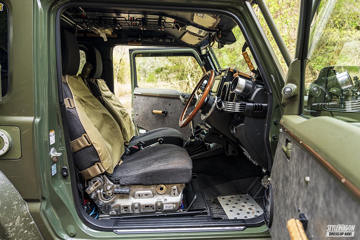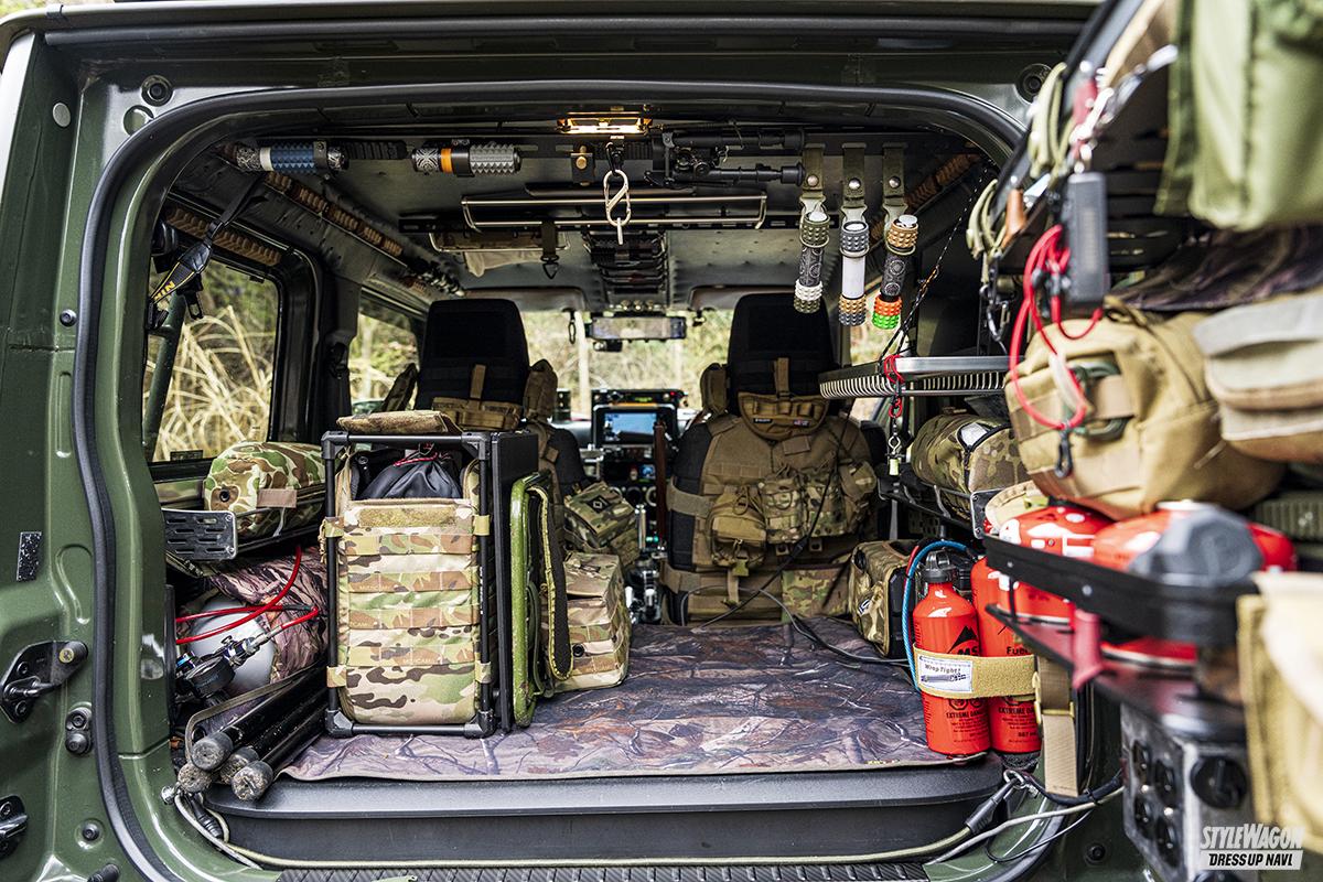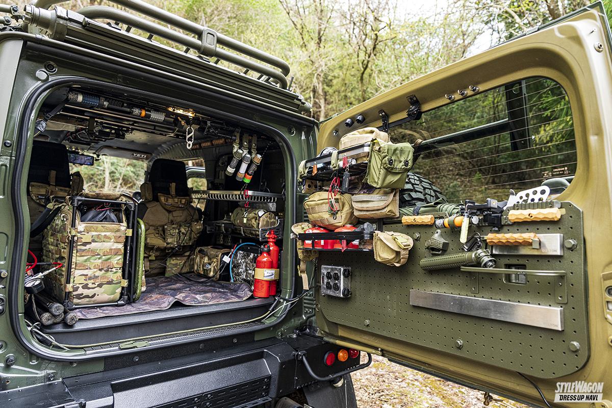 キャンプ用品や狩猟道具など、たくさんの荷物が積み込まれた車内は、ゴチャゴチャしているようでも、どこに何があるかわかっているので、必要な物はスグに取り出せる。本人からすれば自分の大好きなモノやギアに囲まれているわけだから、楽しくない訳がない。まさに「大人のための遊び部屋」に大変身したKoinさんのジムニーシエラなのだ。
