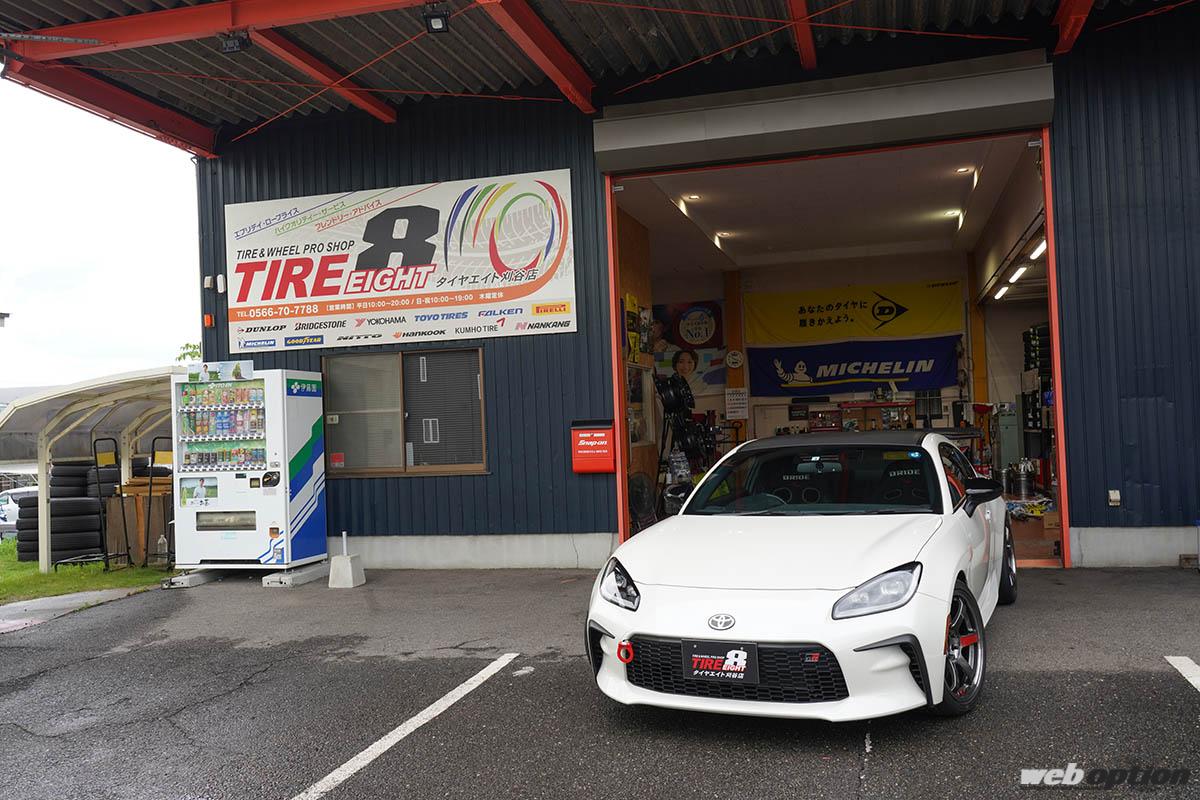 愛知県・三河エリアに店を構える“タイヤエイト刈谷店”。タイヤ&ホイールの購入、取り付けはもちろんのこと、見栄えの良いツライチのセッティングノウハウに長けてた名店だ。近年は86/BRZに力を注いでおり、早い段階からZN6型86をデモカーとして導入しカスタマイズの好例として豊富なメニューを展開してきたが、そのスタンスはGR86になっても変わらない。