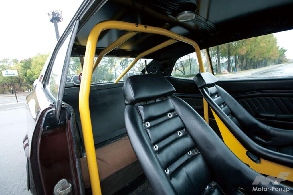 フルバケットシートに、ロールバー装着。室内はブタケツの時代に合った雰囲気でまとめている。
