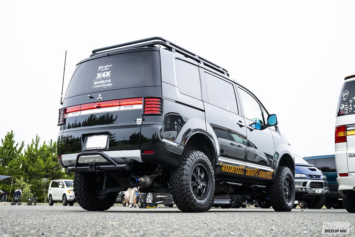 「デリカに乗るならリフトアップ!」と前後にカヤバのショックアブソーバー、ハートランドの4インチブロック、さらにタナベの1.5インチスプリングと計5.5インチリフトアップされた松尾さんのD:5。主な用途は奥様と一緒に楽しんでいる海釣りやデリカ仲間とのツーリング。時には車内で仮眠などもするのだそう。今後はフットワークを今の7Jサイズから8Jまでワイドにサイズアップしたいらしく、実現に向けてオーバーフェンダー化も視野に入れているのだとか。