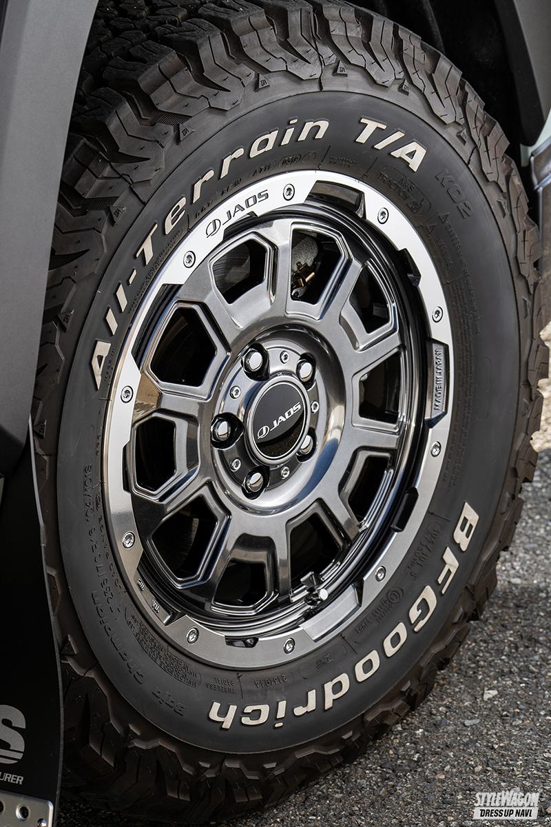 ニッポン四駆界を牽引するジャオスは、新車ディーラーで買えるエアロブランドであるモデリスタとタッグを組んでオリジナルボディキットを販売中。LEDスポットを埋め込んだボンネット先端部のノーズプロテクターやスキッドブロック風のサイドプロテクターなど4種類販売しているが、注目はなんといってもフロントプロテクター。ワイルド感全開のパイプキットは、じつはABS樹脂製。ハードルを上げすぎずそれ風感を楽しめる、ビギナーにも優しいキットだ。