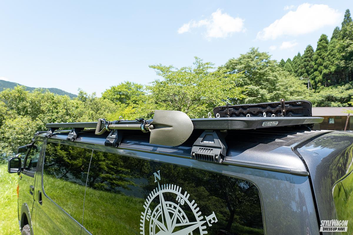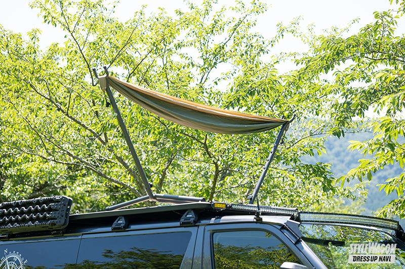 ガード類にラプターライナー塗装を施したり、4インチのボディリフトを果たすなどDIYのレベルもプロ級。ルーフトップにハンモックを立てるのもインパクト。いわく「バン+ハンモック=バンモック(笑)」。拍手。