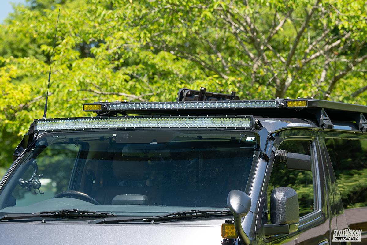 趣味が登山だというKOSEさんは、愛車で山に入ることが多く。登山口まで行きやすいようにとカスタムを始めたそうだが、今では林道まで走りに行くなどオフロード仕様にどっぷり。ガード類やランプ類も充実させた。