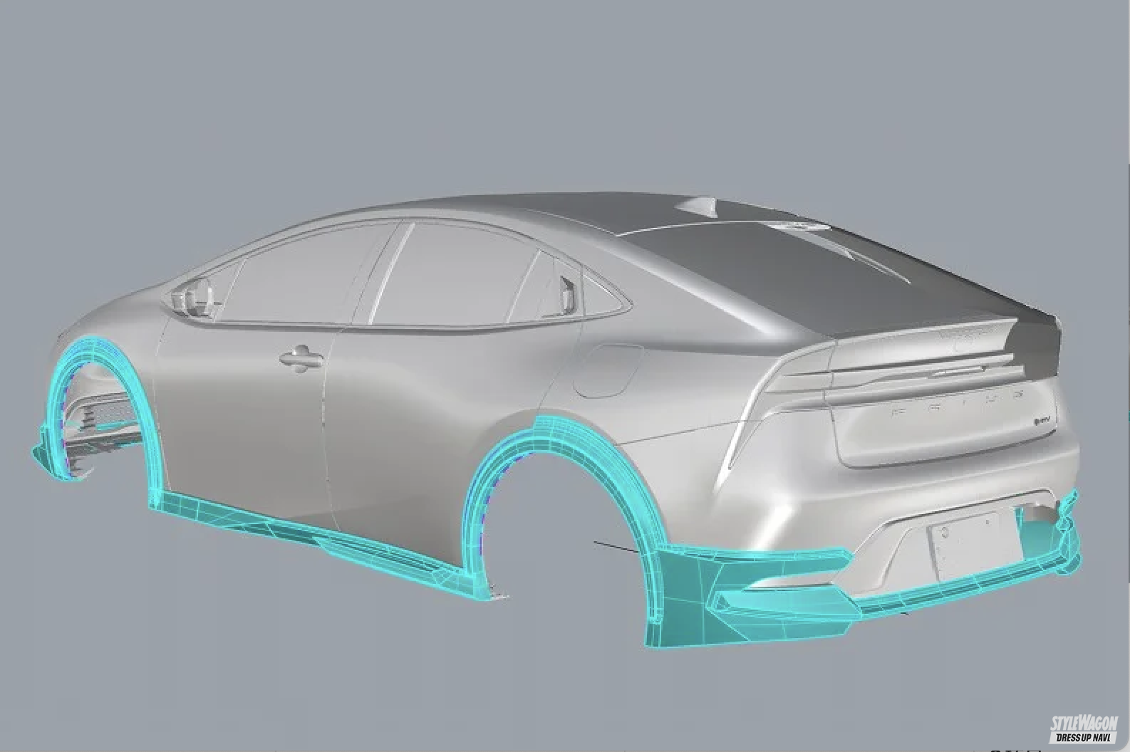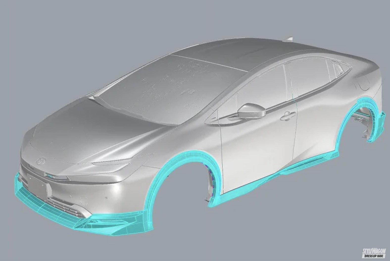 すでに60プリウス用のボディキットを完成させているクルーズ。シンプルでスポーティなディフューザー形状で、厚さ10㎜と極薄だから実用性も高く、ローダウンした状態でも問題なく装着できるというのがその大きなポイントだ。