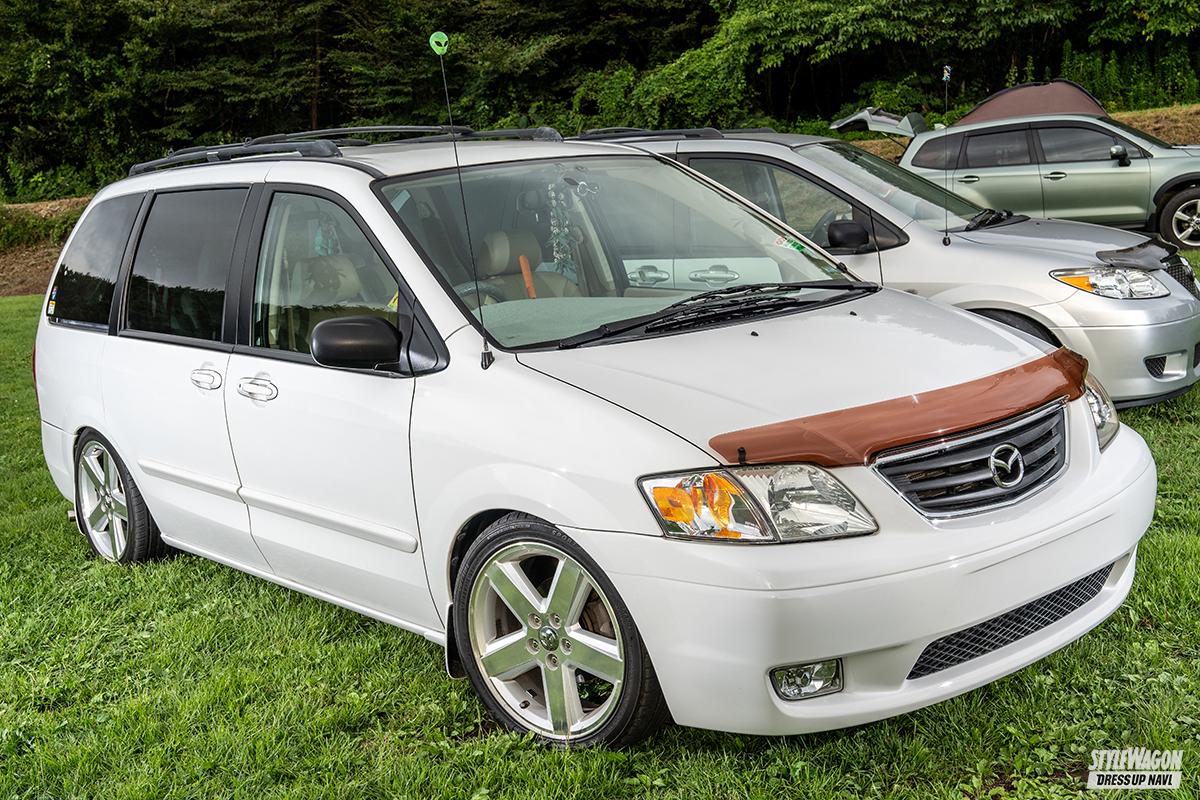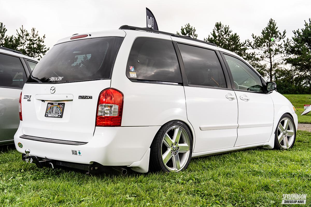 これでもかと北米マツダの純正パーツをモリモリ盛り込んだのが、車高が低すぎてヒッチメンバーの嵩上げ加工が必要になってしまった萩澤さんのMPV。US仕様化のカスタムもワイパーをはじめ、車内までテンコ盛り状態。これだけマツダにこだわりつつもホイールだけはダッヂ・アベンジャーの純正をチョイスするあたり只者じゃございません!?