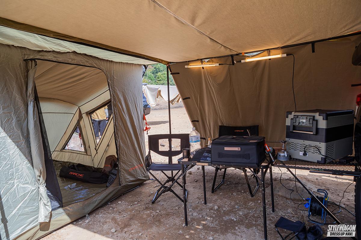 カスタマイズはシンプルで、後期用フロントフェイス&リアバンパーのスワップ、ダーチ製オーニング&テントなどをセット。そして、火が焚けない場所や災害時に対応したサブバッテリーシステムとソーラーパネル、冷蔵庫を追加で装備。さらに、自作ベッドキットで旅を満喫している。まさに4ランナーは、たわともさんのライフスタイルに溶け込んだオーバーランダーなのだ。