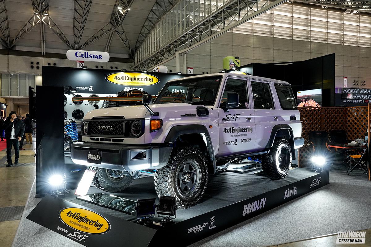 昨年、復刻した新型70ランドクルーザーを4×4エンジニアリングサービスがカスタマイズするとなれば当然ホイールはブラトレーだ。東京オートサロン2024では左側にブラットレーフォージド匠、右側にブラットレーVを履かせてオールドファンをうならせる進化した新型70ランドクルーザーのカスタマイズスタイルをアピールしていた。