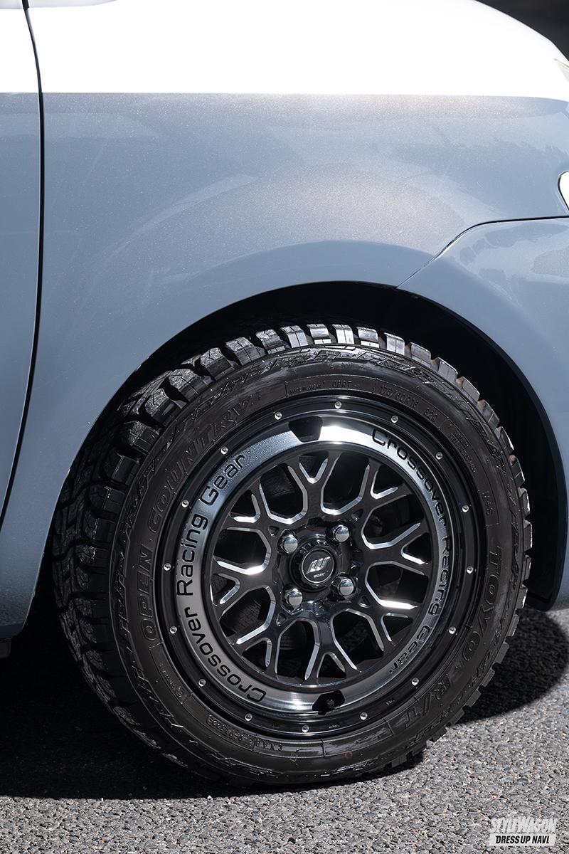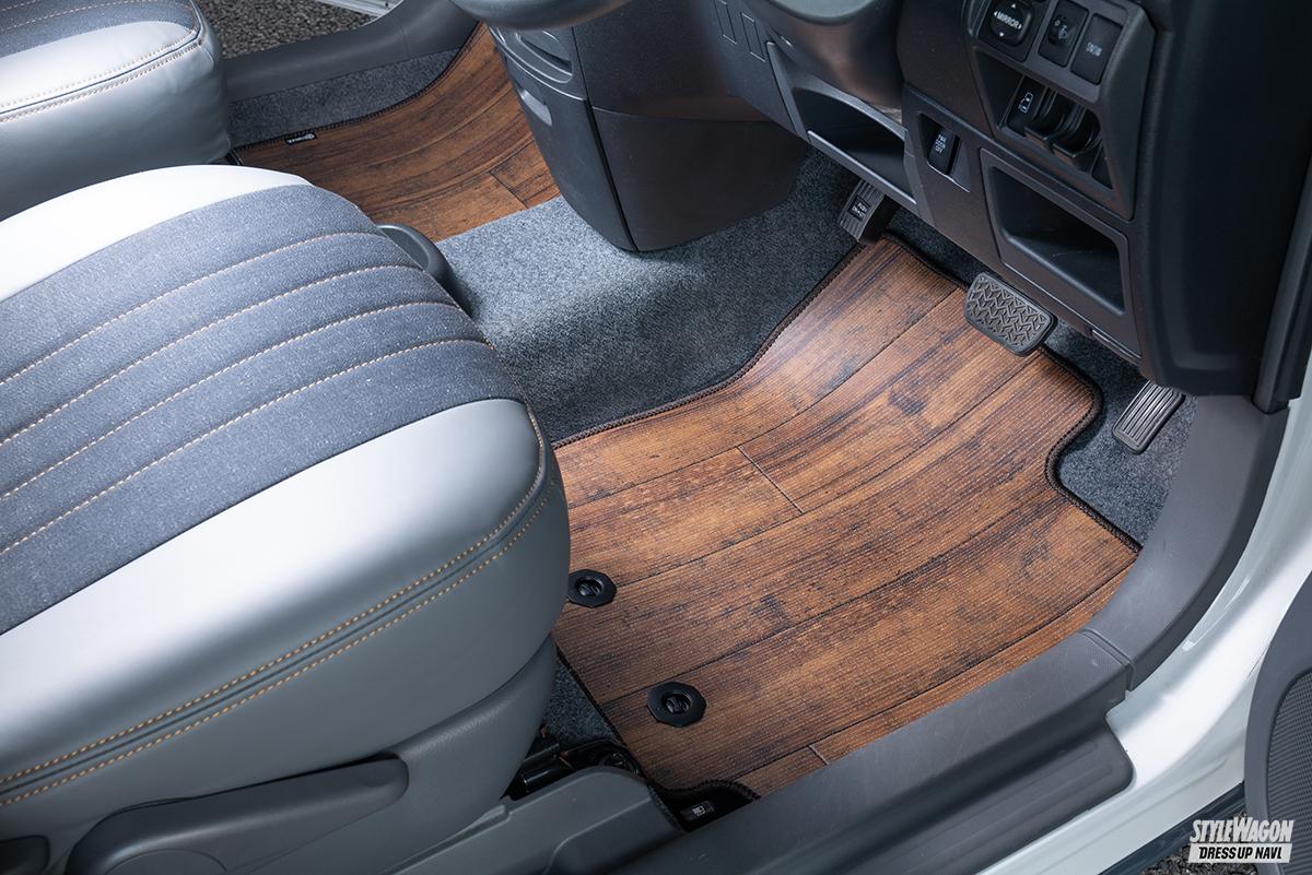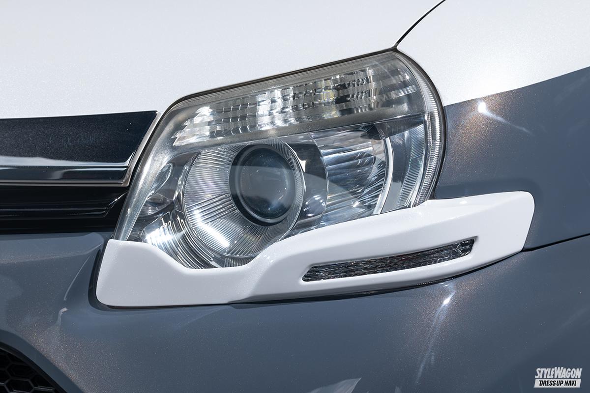 ダイスがベースのパニエに用意されるのはフロントバンパーとヘッドライトガーニッシュ、リアゲートガーニッシュの基本3点。バンパーが現行風のデザインとなっていて、現行バンパーにあしらわれる型押しのシエンタロゴもあえて残したのがポイント。デモカーワイルドな2トーン仕様で、ややワイルドで活発な印象に仕上げた。