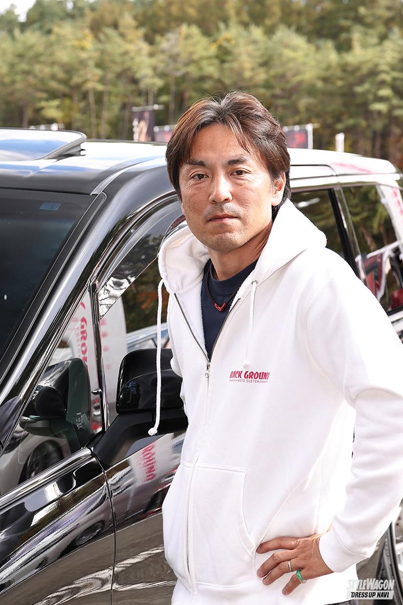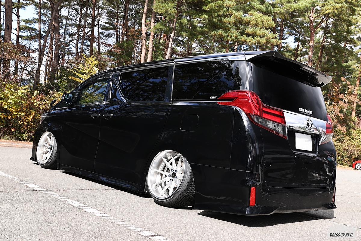 黒を基調に余計な色は極力なくし、低車高&キャンバーの迫力仕様で仕上げたマナブーさん。メッキのグリルをブラックアウトすることで黒の存在感がアップ→さらなる迫力アップに結び付けた! 「メッキは好きではないけど、全部真っ黒にするとバランスが崩れる」とオーナー。バランスをとりつつブラックアウトしていったのだ。取材時点でホイールは白系だったが、ディスク部を黒くしたいそう。それが叶えば、雰囲気は激変しそうだ。