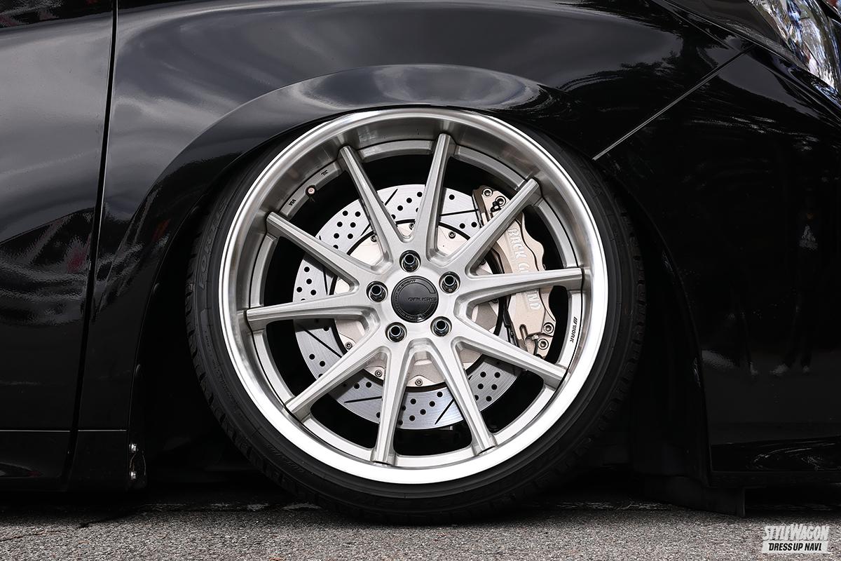 WHEEL●ワーク グノーシスCV201(F20×10J-5・R20×10.5J-12) TIRE●マックストレック(245/30) EXTERIOR●グリル=純正ブラック塗装、スライドドア加工 TUNING●エアサス=エアフォース加工、Rアッパーアーム=クスコ、Fロールセンターアダプター、Rポジションキット=スキッドレーシング、ブレーキ=バックグラウンド