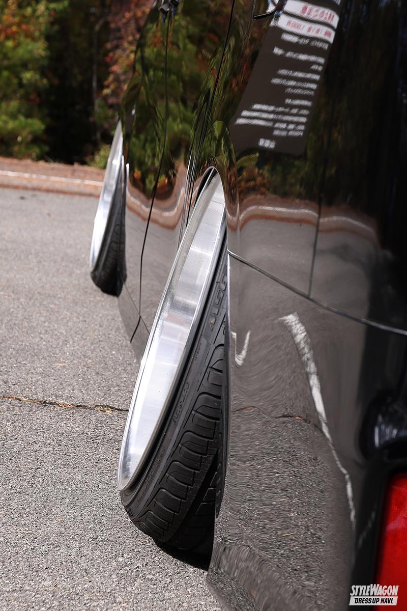WHEEL●ワーク グノーシスCV201(F20×10J-5・R20×10.5J-12) TIRE●マックストレック(245/30) EXTERIOR●グリル=純正ブラック塗装、スライドドア加工 TUNING●エアサス=エアフォース加工、Rアッパーアーム=クスコ、Fロールセンターアダプター、Rポジションキット=スキッドレーシング、ブレーキ=バックグラウンド