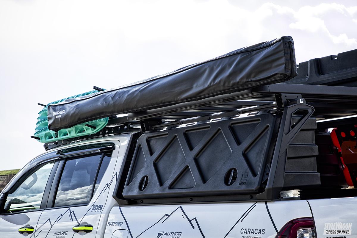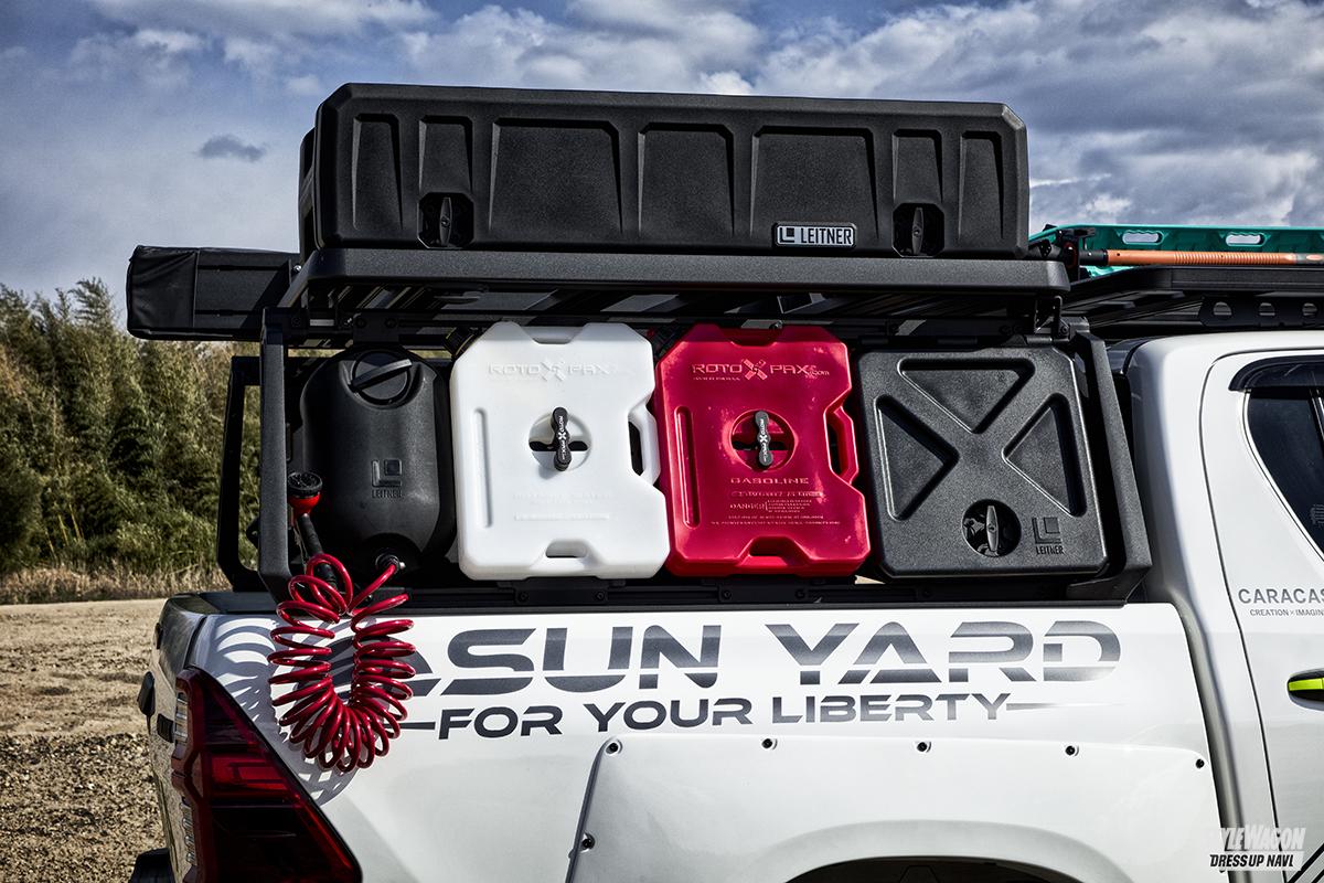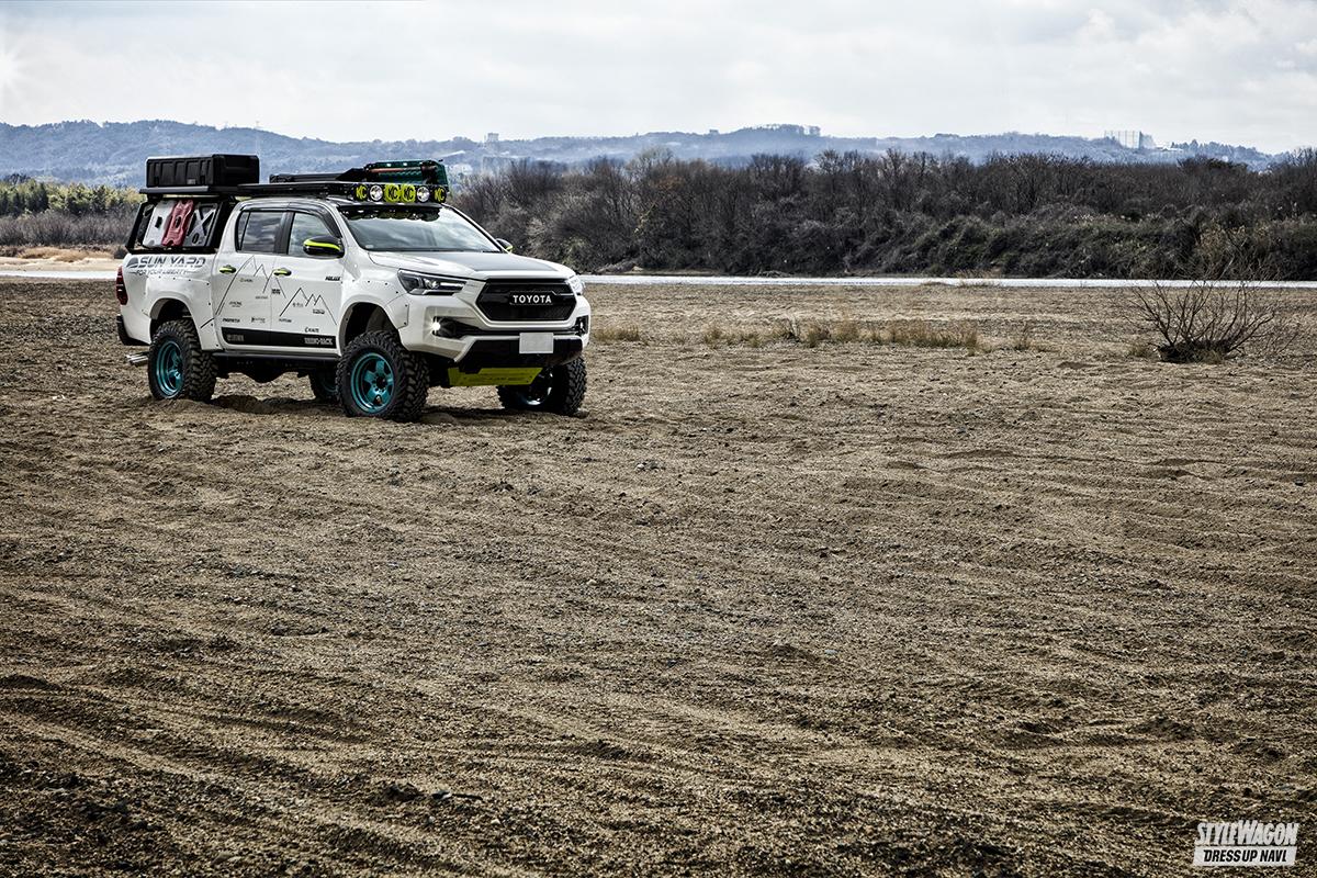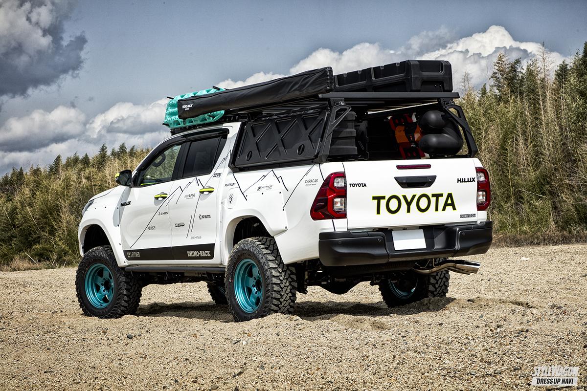 こうして発揮する瞬発的なインパクトで視線を集めると、今度はディテールでも魅せる。デカールやロゴのカラーをさり気なく変えたり、テールゲートテーブルなど目からウロコのギアを搭載していたりとワクワクが止まらない。サンヤードのコンプリートカーが支持されるのがよく分かる。ぜひスミからスミまでチェックして欲しい。