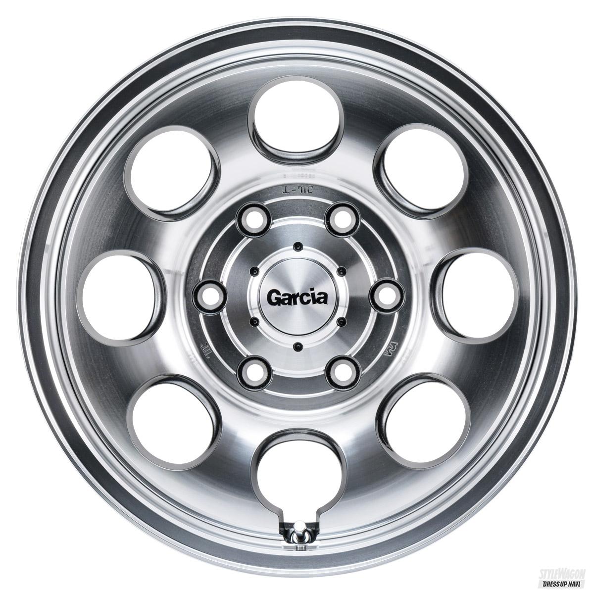 存在感強めのディスクに8ホールをアレンジ。レトロ系から4×4まで幅広く愛される、いわゆるロータスルーツデザインが最大のウリ。ディスクは中央に向かって深度を下げてコンケイブライン描く。センターキャップまわりにも高低差を設け、ギア系の映え意匠を投入して視線をかき集める。そのディスクとリムフランジは、ヴァーレイと呼ぶ溝を設けて明確にセパレート。視覚的なディープ感を演出することで存在感はかなり強めだ。