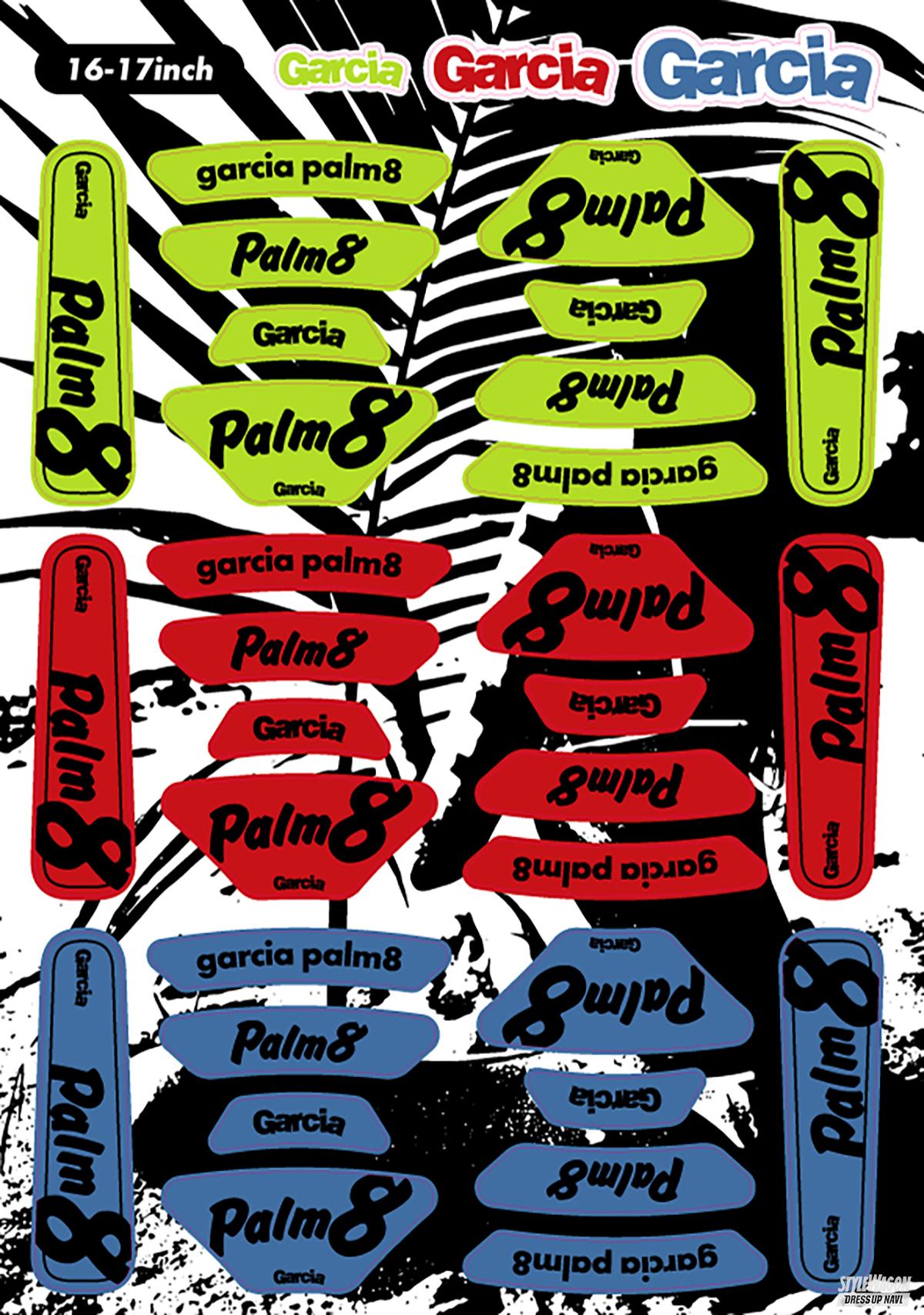 また、ガルシアらしい遊び心もプラス。9色から選べるオプションステッカーを設定しているので、自分だけの個性あふれるパーム8をプロデュースできるのだ。
