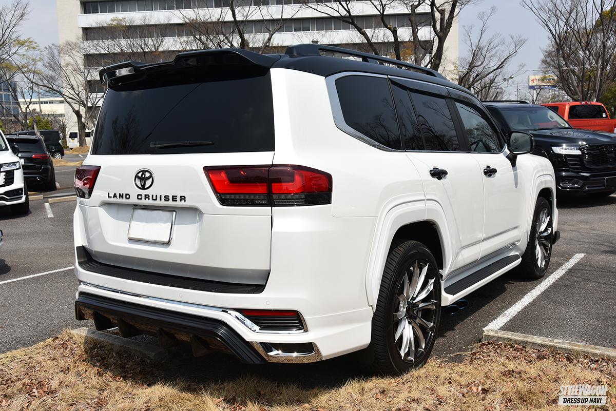 WHEEL●ヴァルド・ジャレット(22インチ) TIRE●ヨコハマ・パラダ(285/45) EXTERIOR●F/R=モデリスタ+ロジャム、ウイング/フェンダー=モデリスタ、リアゲートスポイラー=ロジャム、グリルブラックアウト TUNING●マフラー/インテーク=ロジャム