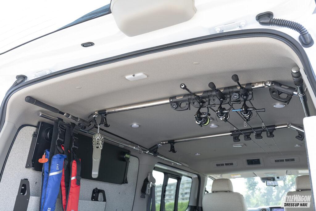 仕事はもちろんのこと、遊びの相棒としても最適なキャラバン。様々なアクティビティに対応できる懐の深さを持っているが、ボクシーが手がけたのはあると便利なモノがすべて詰まった「釣り」仕様。自分の足で積極的に移動するルアーフィッシングのスタイルから拝借した、その名もランガンギア2。