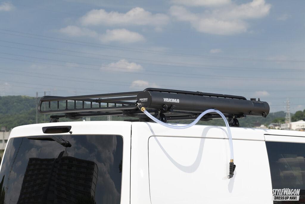 外装に関しても多くの荷物を積みたい時に活用できるヤキマのルーフラックに加え、汚れたモノを洗いたい時に役立つシャワータンクまで設置する。そして質感が高いカーボンを取り入れたスポイラーやさり気なくボリュームアップを実現するフェンダープロテクターなど、ボクシーが誇るオリジナルパーツも数多く装着。どこへでも行けそうなタフな雰囲気を演出する。