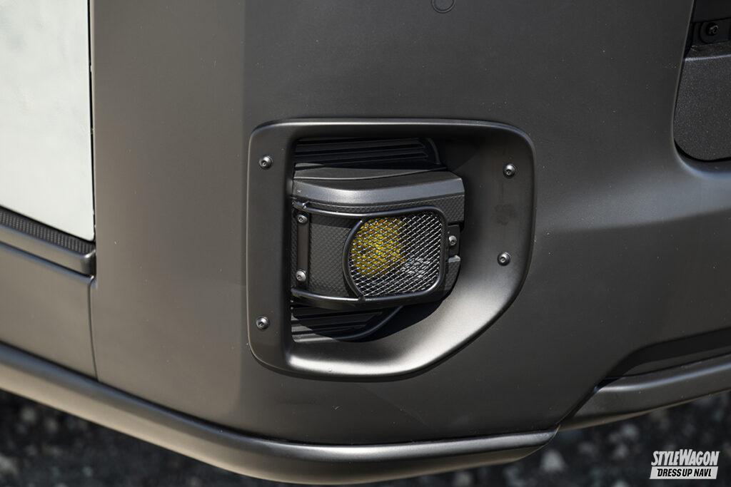 2024年に追加された新色のアーバンカーキもこのクルマのコンセプトを表現することに貢献。開発中のグリルマーカーやバンパーダクト、フォグカバーの組み合わせが、さらにワイルド感を強調している。まさにオフスタイルとスポーツテイストの融合を実現させた1台は、エムテクノだからこそのコーディネイト。これからはオフ×スポーツカスタムが来る!