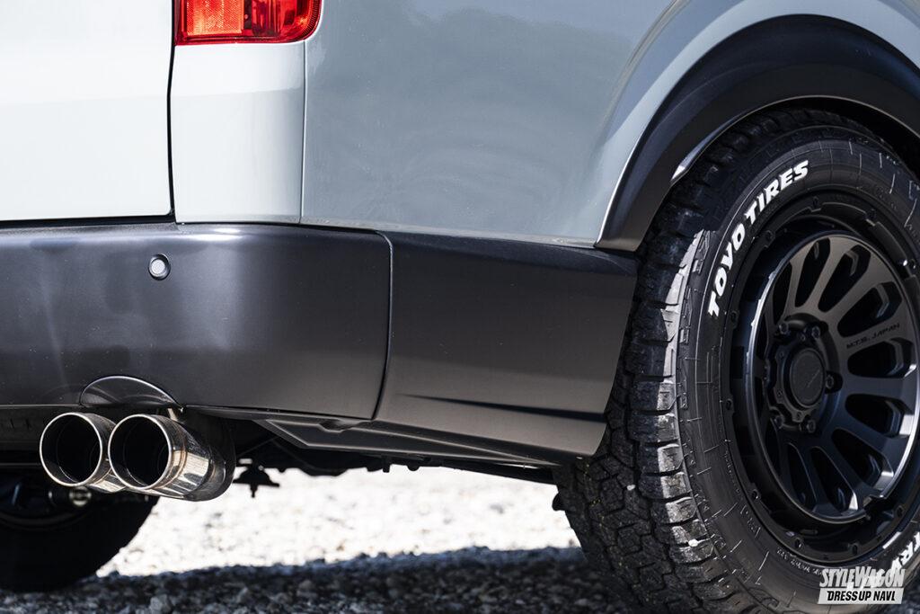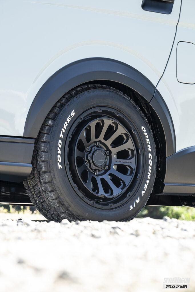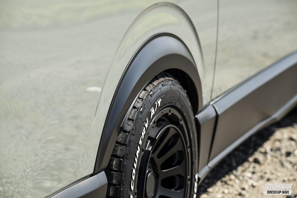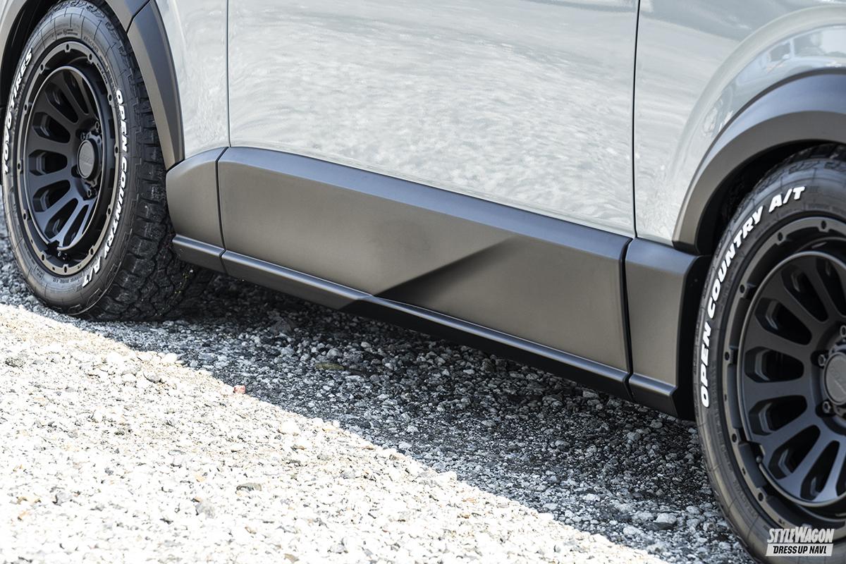 オフスタイルやクロスオーバースタイルといえば、まず最初に車高をリフトアップして、オフタイヤを入れて……というのが一般的だと思うが、おなじみエムテクノの手にかかると、オフスタイル×スポーツをベースにした新感覚の「スポーツアウトドアスタイル」にたどり着く。