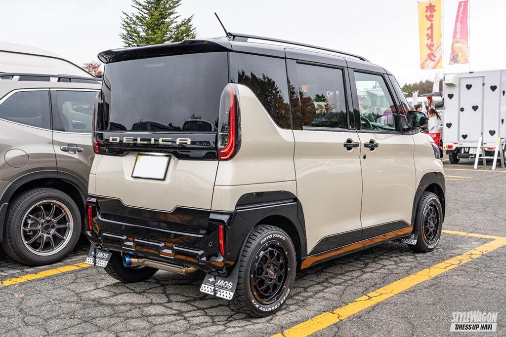 50/51/52と歴代エルグランドを乗り継いできたヘイさんが、そろそろ日常的な使い勝手も考えて選んだというデリカミニ。カスタムのアプローチも以前のシャコタン仕様からリフトアップ仕様に180度変更された。そんなデリカミニのキモとなるのがリフトアップモデルとなるブリッツの車高調キット「ダンパーZZ-R」。この日も和歌山から長距離移動するなど、とにかくロングドライブが大好き! ただ車高を上げるだけでなく快適な乗り心地も重視して、走行状況に応じて減衰力が自動調整される「DSC PLUS」を選択。高速道路での快適さはもちろん、山道でのロール軽減、乗り味が少々硬めだけど突き上げ感がほとんどないないど「購入して本当に良かったアイテムです」と大絶賛!