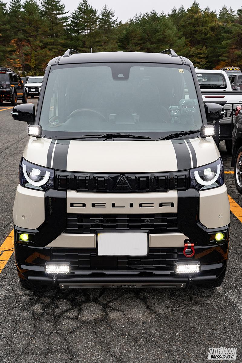 50/51/52と歴代エルグランドを乗り継いできたヘイさんが、そろそろ日常的な使い勝手も考えて選んだというデリカミニ。カスタムのアプローチも以前のシャコタン仕様からリフトアップ仕様に180度変更された。そんなデリカミニのキモとなるのがリフトアップモデルとなるブリッツの車高調キット「ダンパーZZ-R」。この日も和歌山から長距離移動するなど、とにかくロングドライブが大好き! ただ車高を上げるだけでなく快適な乗り心地も重視して、走行状況に応じて減衰力が自動調整される「DSC PLUS」を選択。高速道路での快適さはもちろん、山道でのロール軽減、乗り味が少々硬めだけど突き上げ感がほとんどないないど「購入して本当に良かったアイテムです」と大絶賛!