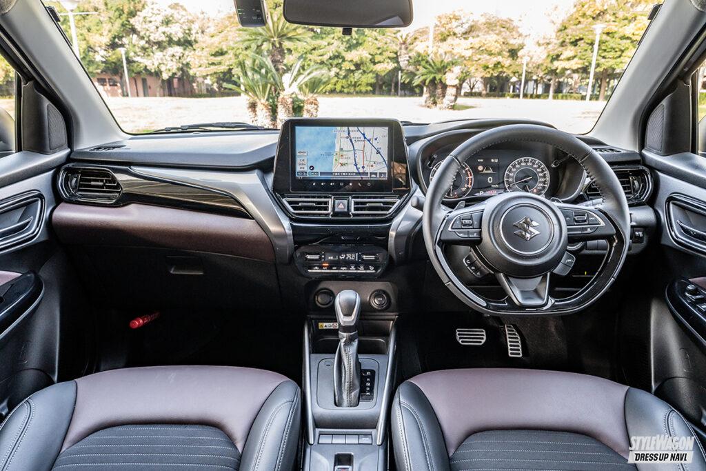 フロンクスのドライバビリティは、安定方向に振った大人の雰囲気が漂う乗り味だ。同じプラットフォームを使う「スイフト」は峠道でキビキビと動くけれど、フロンクスはどっしりと構える感覚が増している。ひとまわり大きなクルマに乗っているような印象と言って良いだろう。