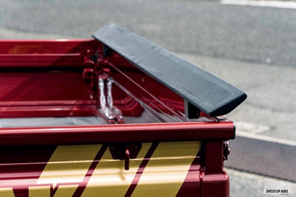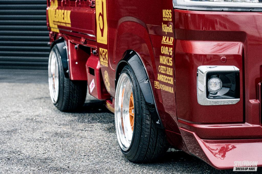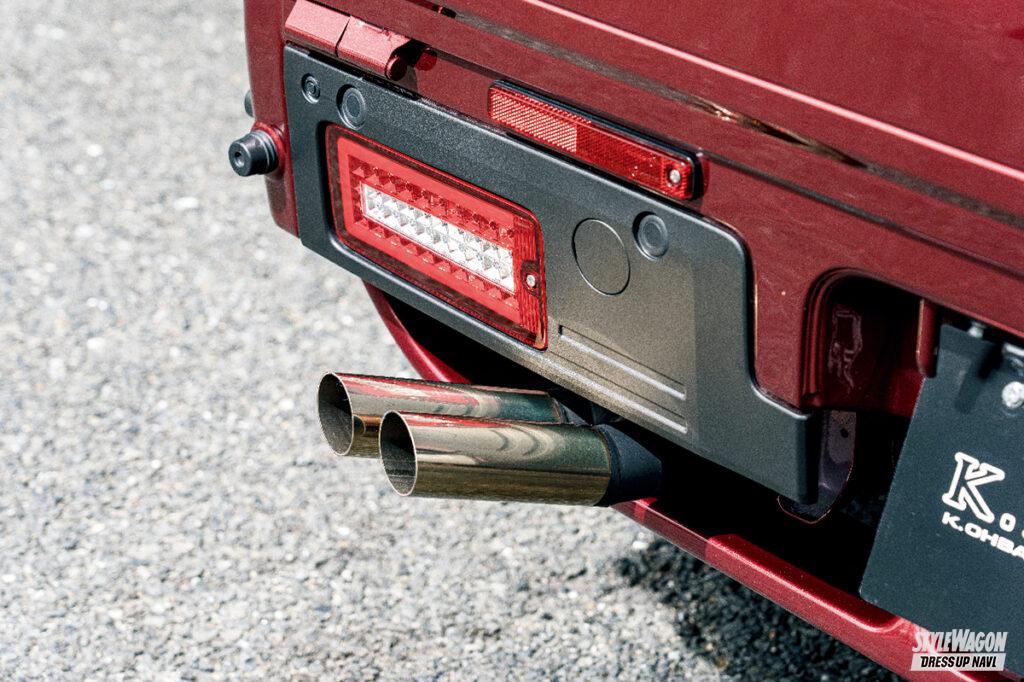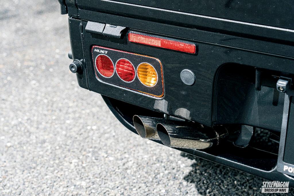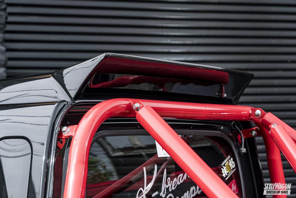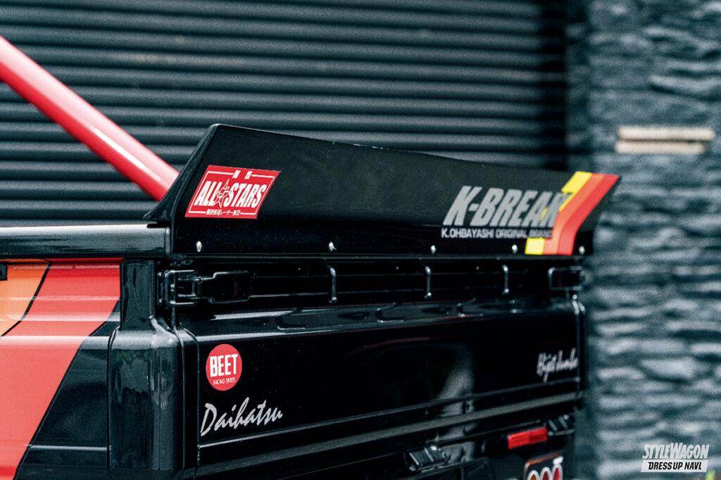 そしてリアまわりはアンダースポイラーではなく、懐かしいスリットスポイラーをハイゼット専用設計でリリースした。他にもオーバーフェンダーやリアウイングなど、当時感を演出できるアイテムを豊富に取り揃えている。