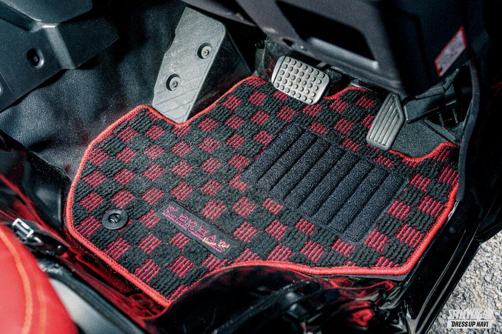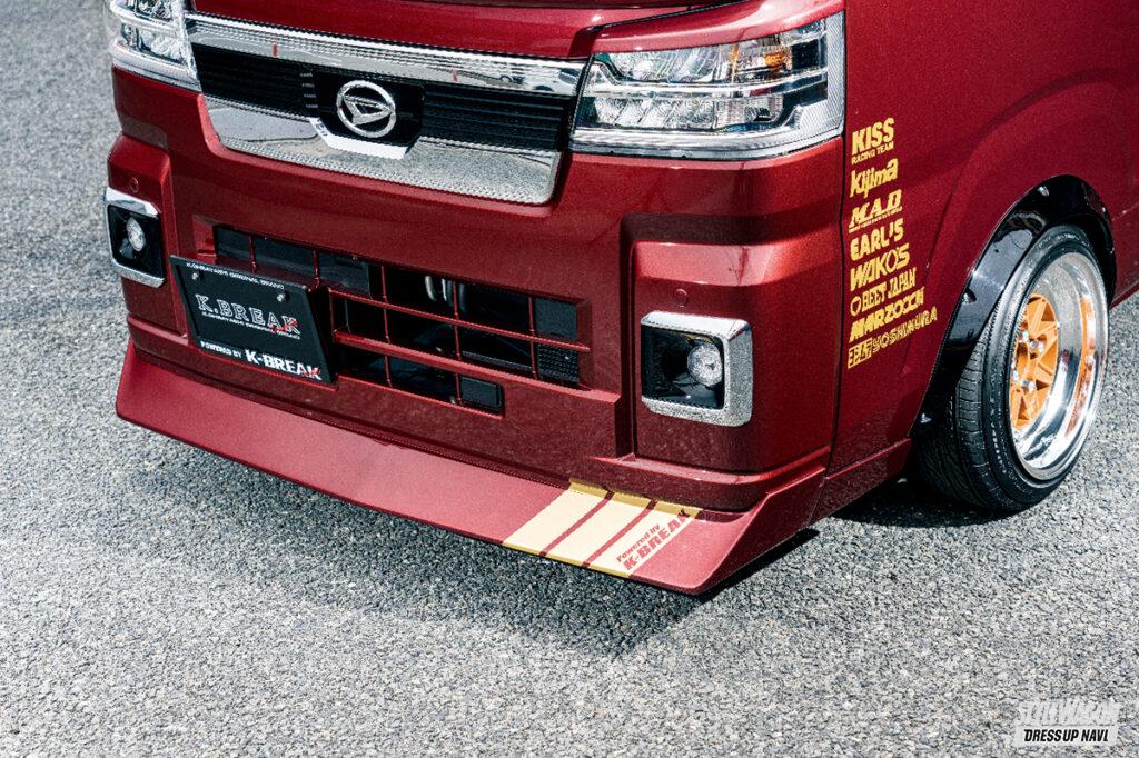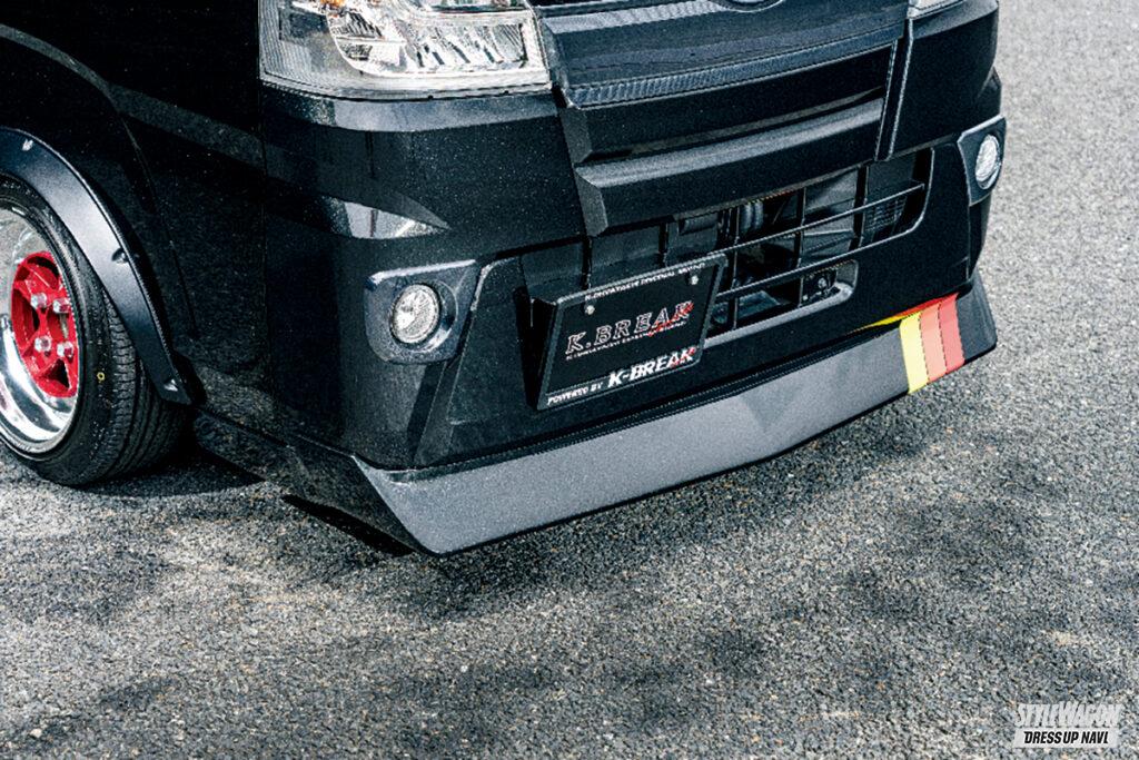 先端を鋭く突き出したフロントリップスポイラーは、イカツい雰囲気が満点。サイドまわりは新たに開発した、バイクのカウルを連想させるサイドアンダーカウルがポイント。下まわりを軽やかに仕立ててくれる。また丸見えとなっている荷台下のフレームをスタイリッシュに隠してくれる、サイドフレームプロテクターも待望のニューアイテム。業界初となるアイテムだけに要チェックして欲しい。