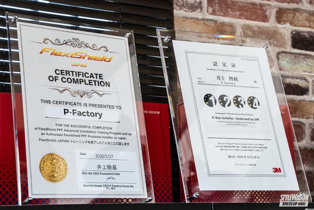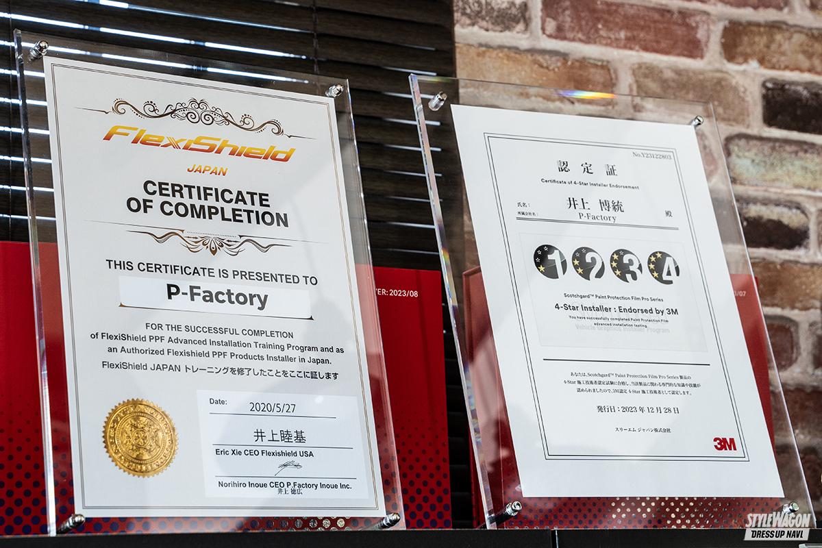 スーパーカーをはじめスーパーGTなどのレーシングカーのプロテクションやラッピングを施工するピーファクトリーは、プロテクションがあまり一般的ではなかった2017年にオープンし、第一人者として最先端を進み続けるプロフェッショナル。代表の井上さん自らが肌感や質感にこだわって厳選したフレックスシールドやレジェンド製フィルムを使用し、納得のいく仕上がりを追求する職人集団だ。