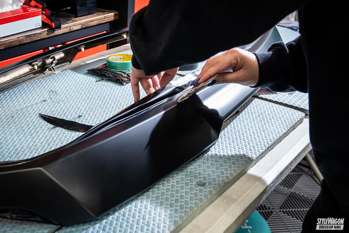 そこでぜひおすすめしたいのがプロテクションフィルムの施工だ。一般的にはスーパーカーが市場価値を下げないように施工するケースが多いが「実はヨンクもプロテクションフィルムを導入するのがおすすめです」とピーファクトリーの井上さんはいう。