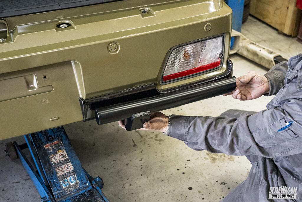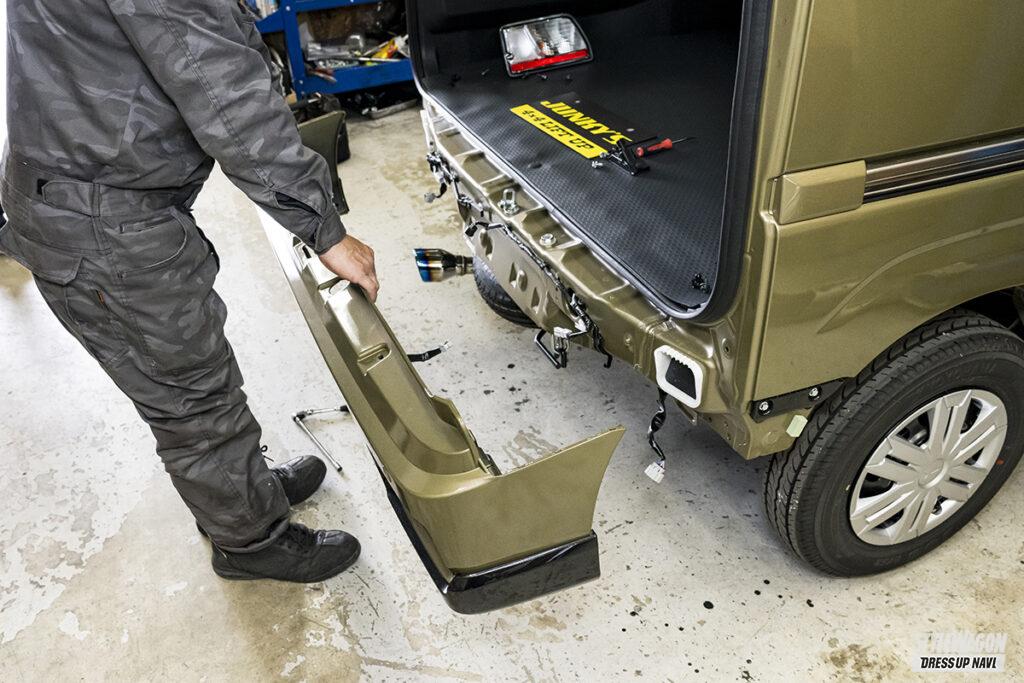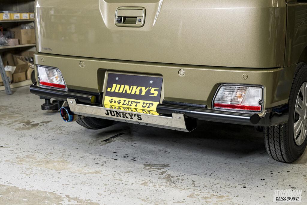 個人的な調べで申し訳ないが、アトレー用のスチールパイプバンパーはフロント用こそ複数あれど、リア用はジャンキーズ4×4製以外に見たことがない。仮に存在していたとしても、レアなアイテムであることは間違いない。ジムニーならフレームに固定すればいいが、モノコックのアトレーはどのようにマウントしているのか気になった。