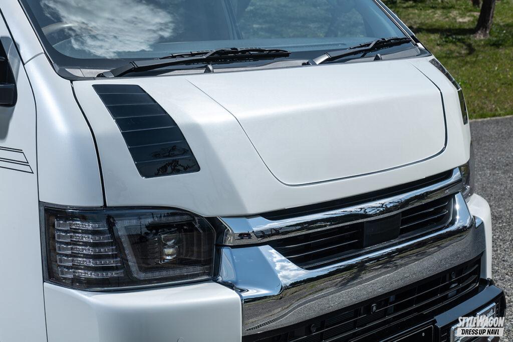 そのほかデモカーには、イグジスト・スラスターボンネットなども装着。この「デザートライン」ハイエースは、威風(大阪府和泉市 072-335-0999)でコンプリートモデルとして購入可能だ。