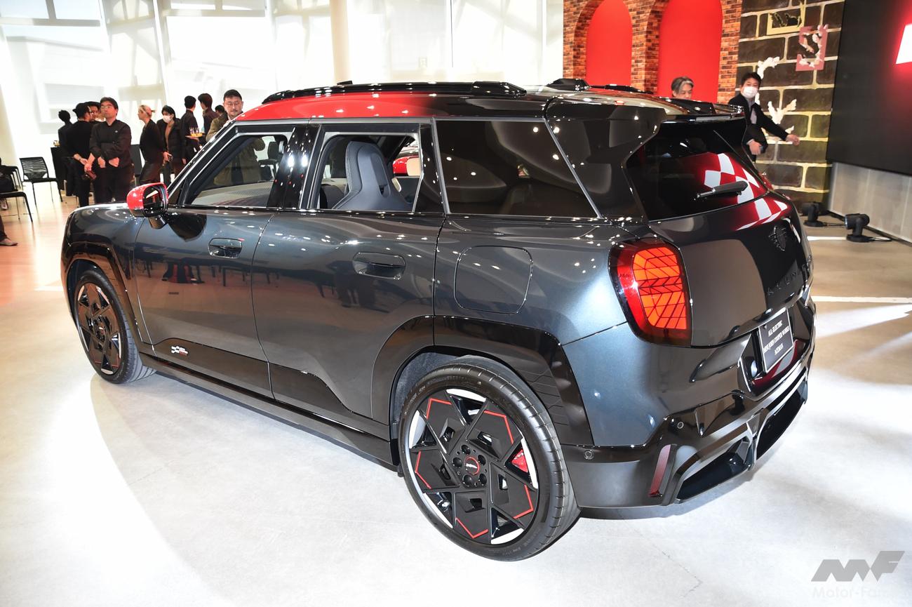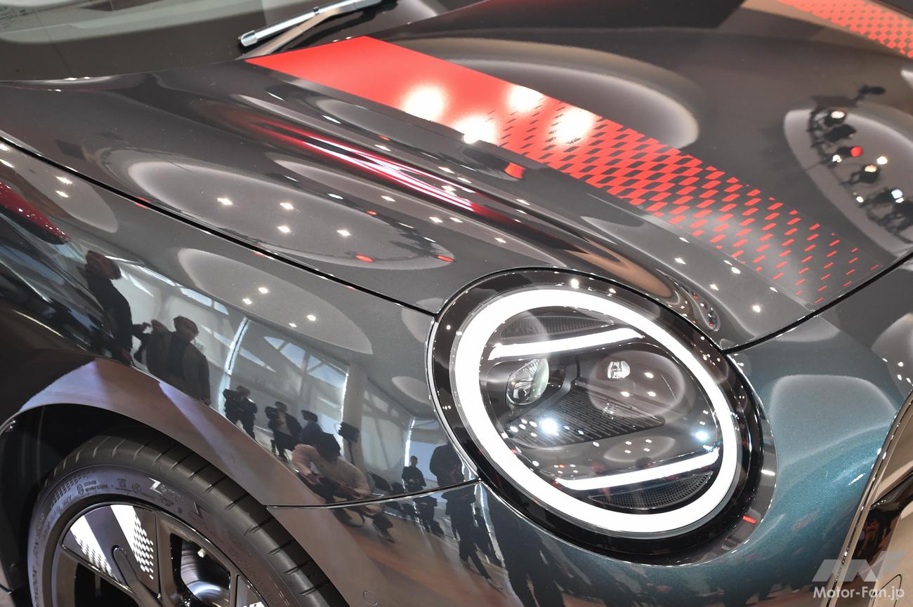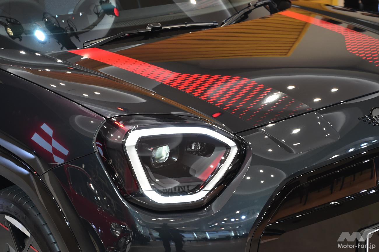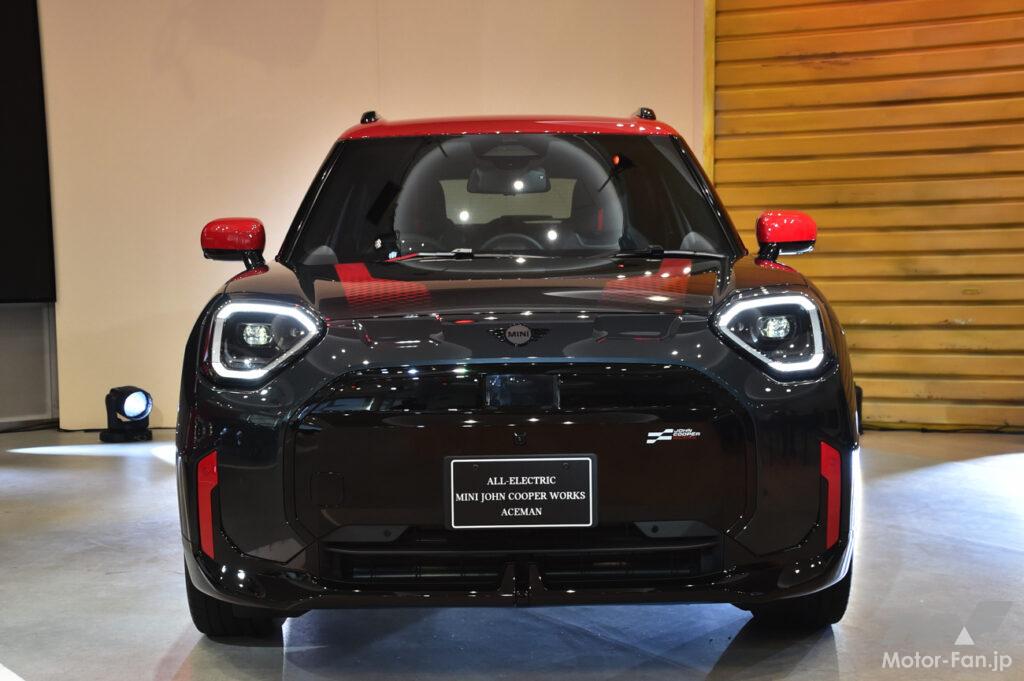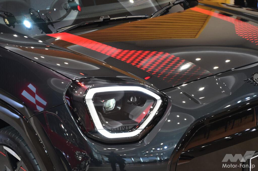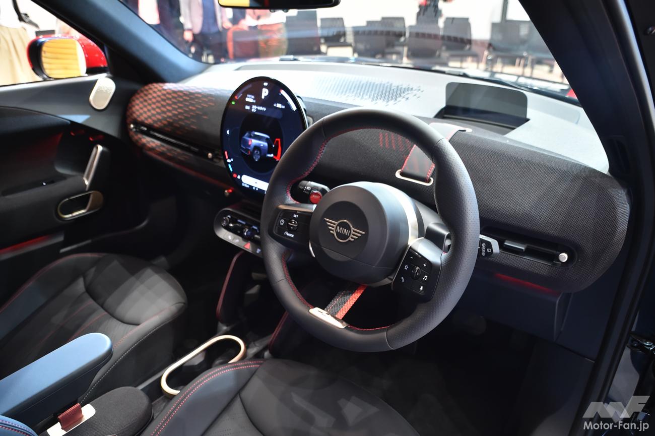 基本的に既存モデルの3ドア系がヘッドライトを含む丸型デザイン、エースマンがSUV系の角型デザインは踏襲され、そこに電動モデルとしての変更とJCWとしてのテイストを盛り込んだスタイルになっている。