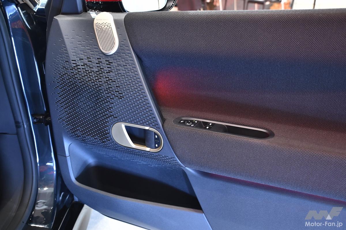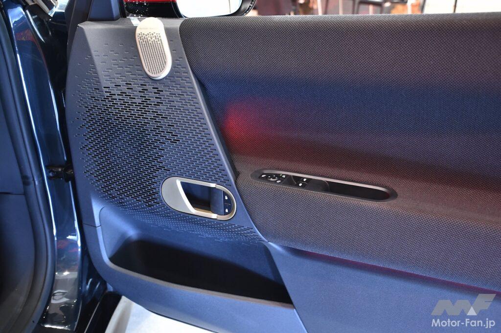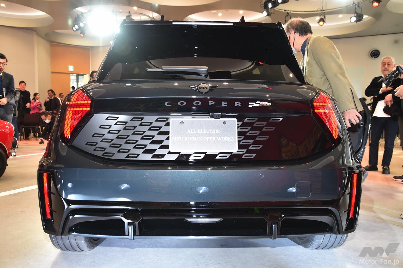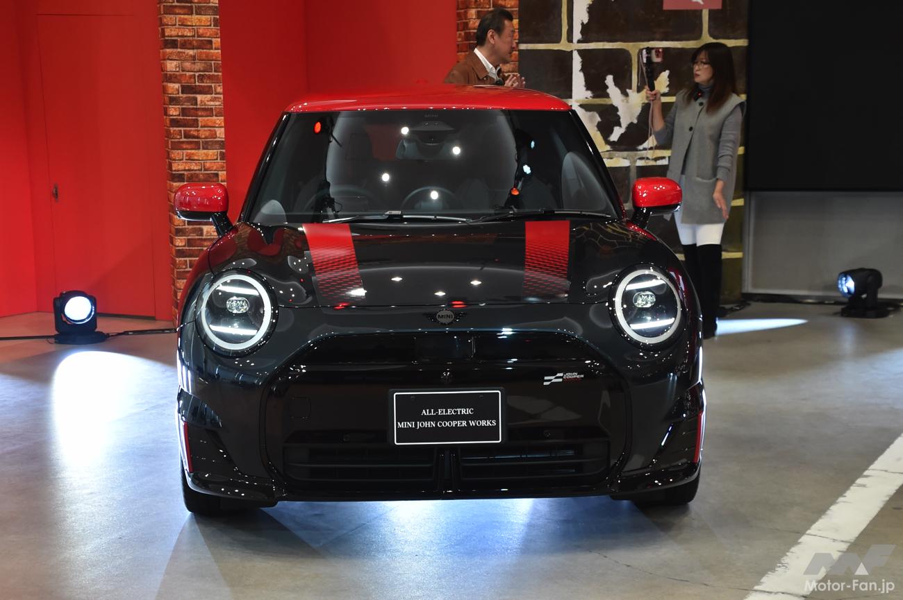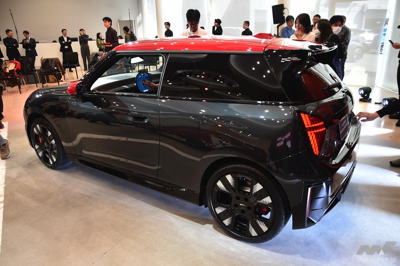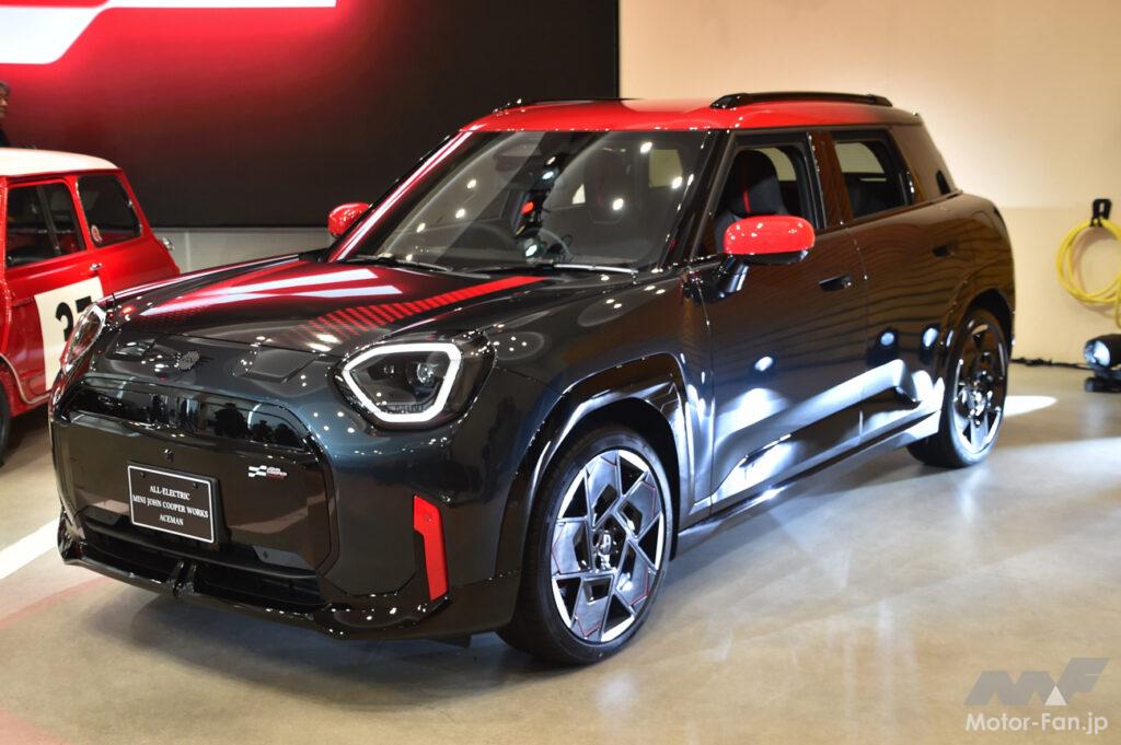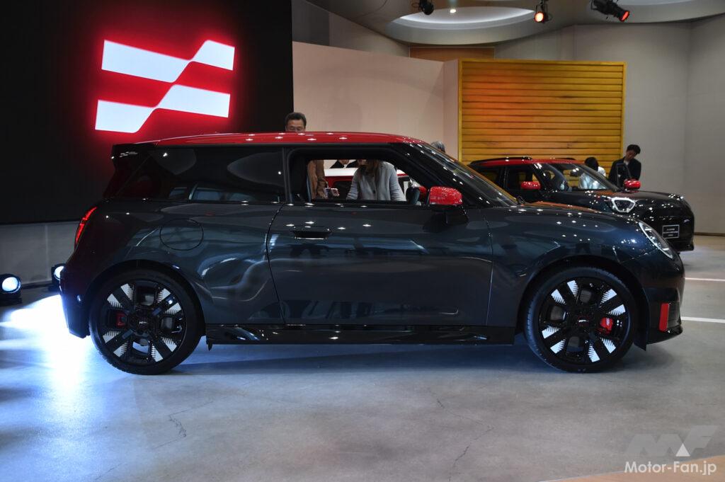 基本的に既存モデルの3ドア系がヘッドライトを含む丸型デザイン、エースマンがSUV系の角型デザインは踏襲され、そこに電動モデルとしての変更とJCWとしてのテイストを盛り込んだスタイルになっている。