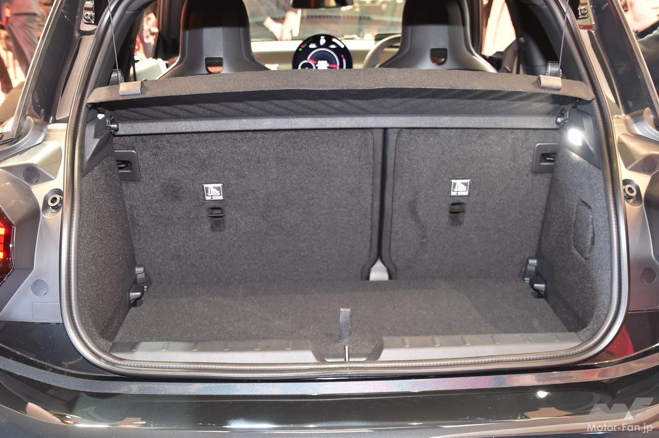 トランクルームはJCW Eは3ドアJCW、JCWエースマンEはエースマンEおよびエースマンSEと同様のサイズと仕様になっている。背もたれは6対4分割可倒式で、トランクルームの拡大が可能。