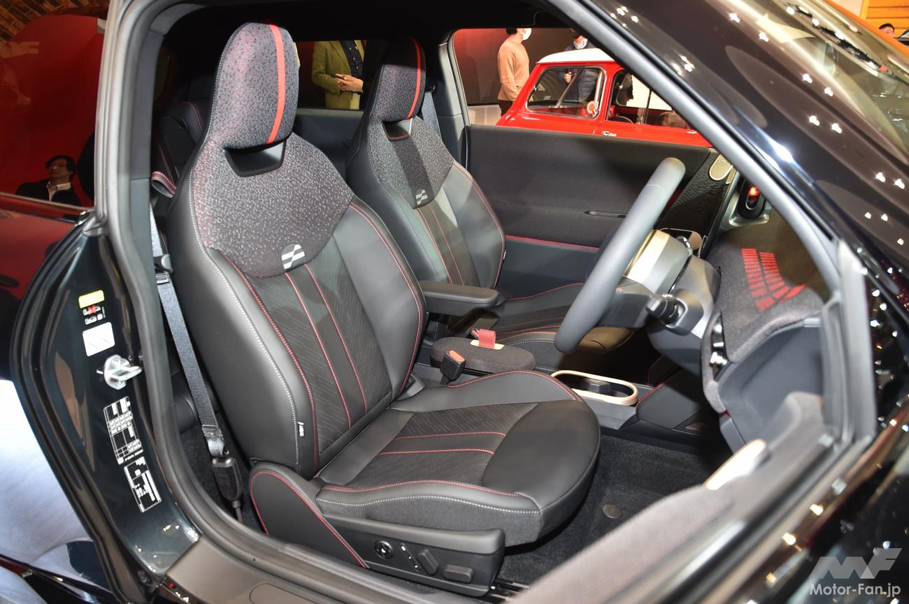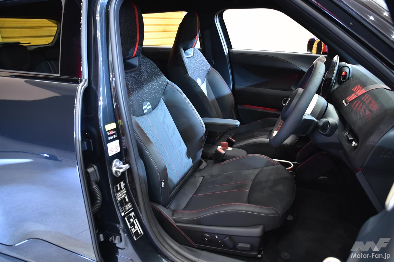 フロントシートはJCW Eと同様。リヤシートは3名掛けとなり乗車定員は5名となる。エースマンE/ESと異なり、リヤシートにもレッドのステッチが施され、JCWとして共通のイメージでまとめられている。