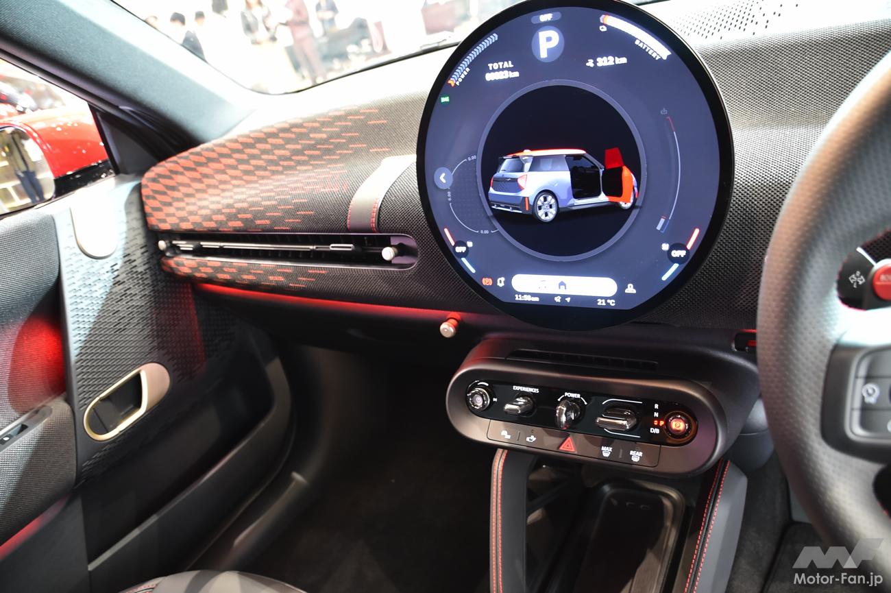 円形の有機ELディスプレイやセンターコンソールのインターフェース、センターコンソールボックスなどはMINIシリーズ共通のレイアウトだ。