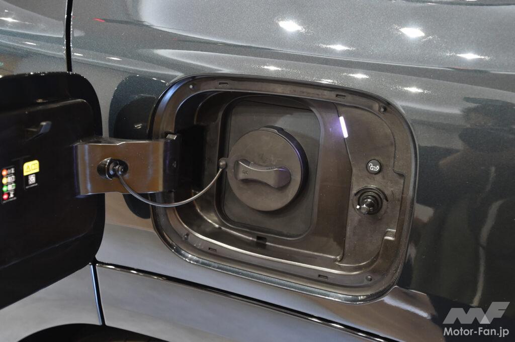 充電口は左右リヤフェンダーに設置されており、右側が普通充電、左側が急速充電となっている。90kWの急速充電を使えば、充電時間は10%から80%までで約30分だ。