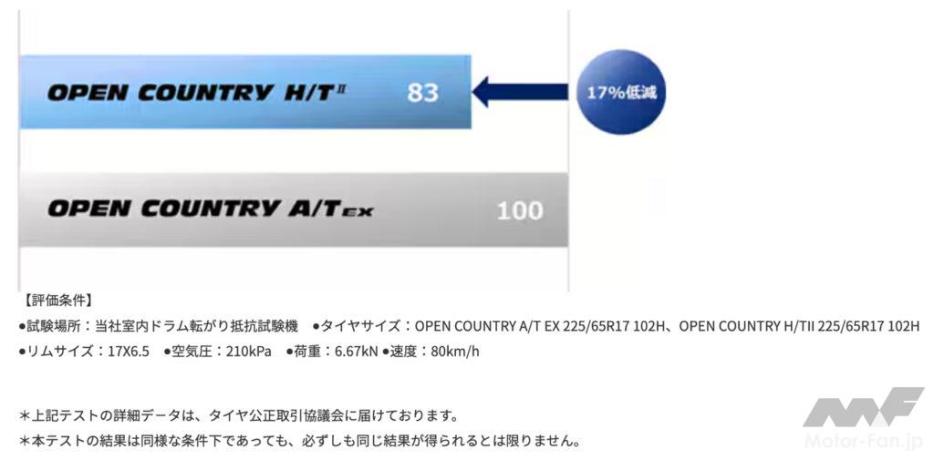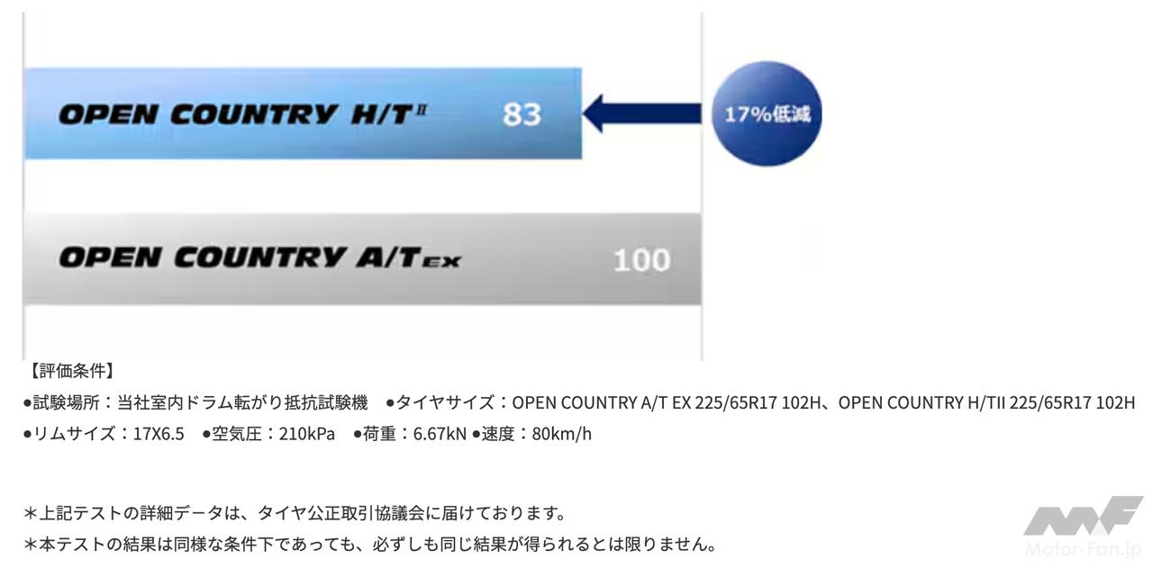 転がり抵抗性能は従来品「オープンカントリーA/T EX」と比べて17%向上