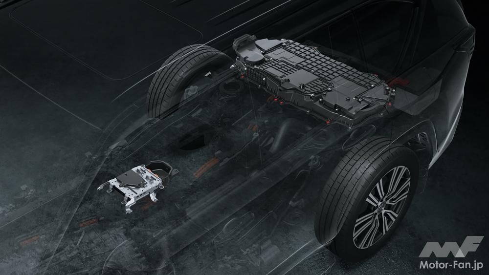 モータージェネレーターの追加による重量増、全長が伸びたパワートレーン搭載に対応し、専用のクロスメンバーを追加。断面と板厚を最適化した上で薄型形状にすることで、エンジン車同等の最低地上高を確保した。パワートレーンの重量増に合わせ、リヤ側エンジンマウントの材質もより耐久性の高いものに変えたという。